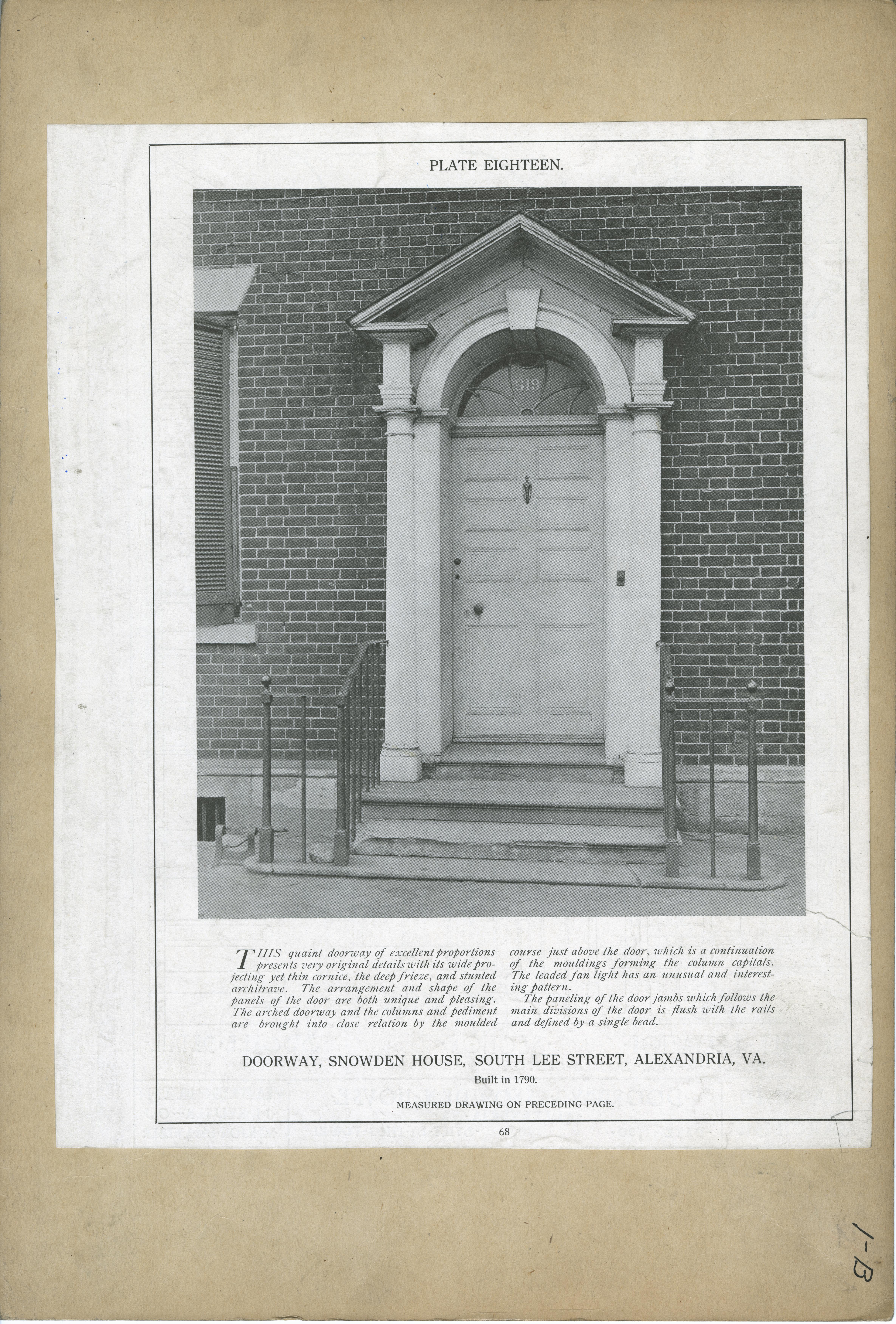 | Description | Location Box 1B Item 34 Front Side Plate Eighteen Doorway, Snowden House, South Lee Street, Alexandria, Virginia 1790 |