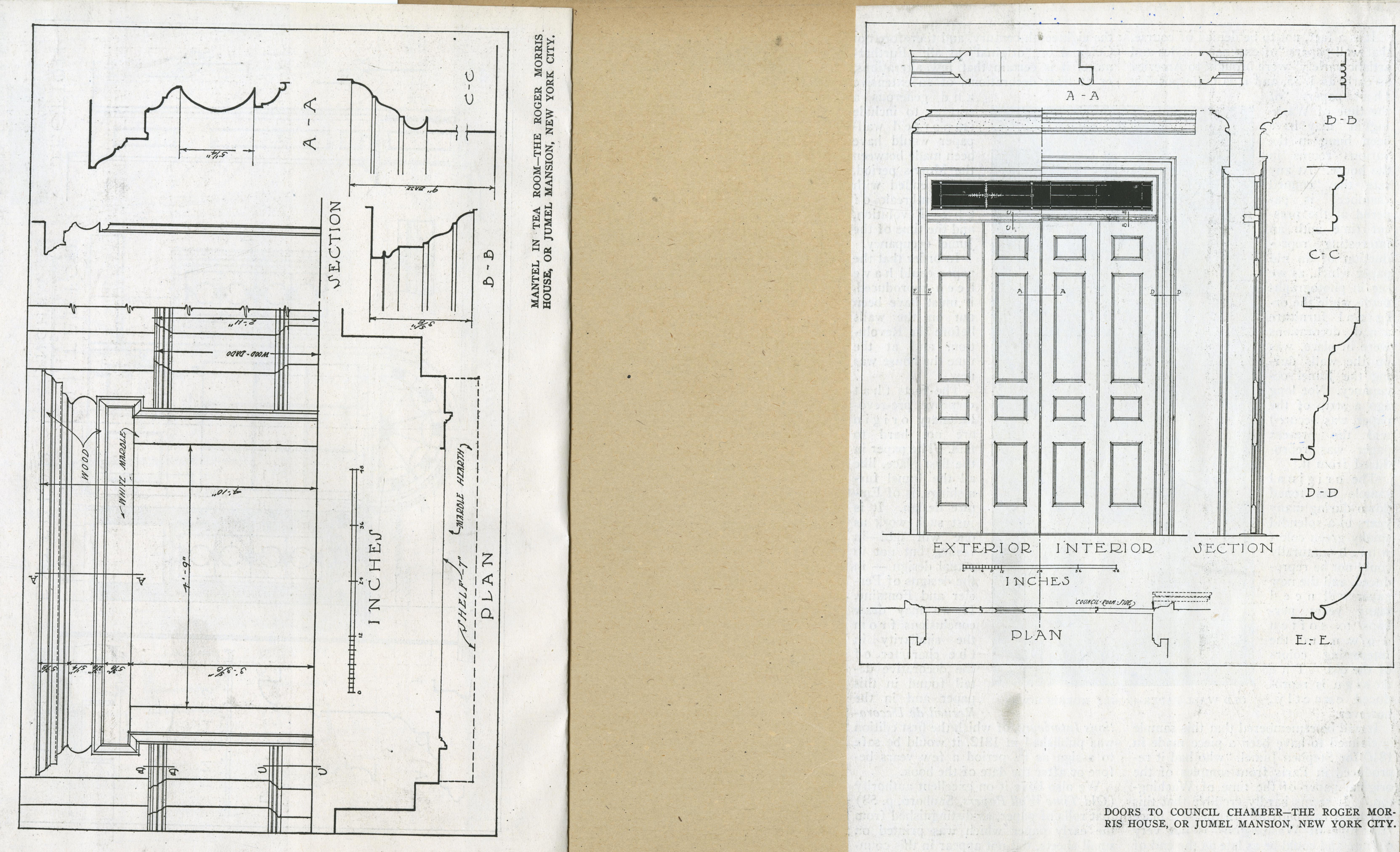 | Description | Location Box 1B Item 39 Page 4 Mantel in Tea Room, Doors to Council Chamber Roger Morris House or Jumel Mansion, New York City |
