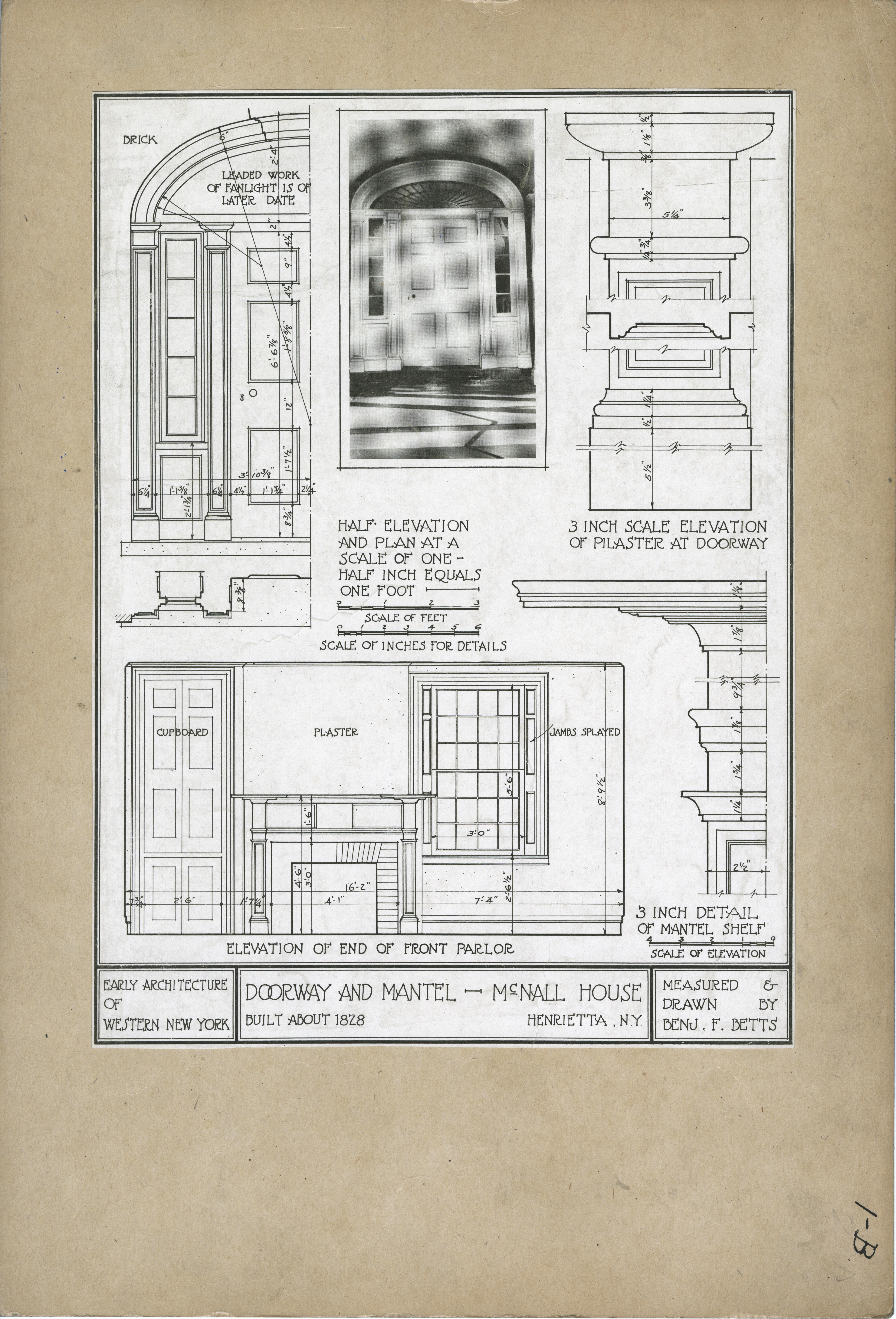 | Description | Location Box 1B Item 41 Doorway and Mantel, McNall House 1828 Henrietta, New York Measured and Drawn by Benj. F. Betts |