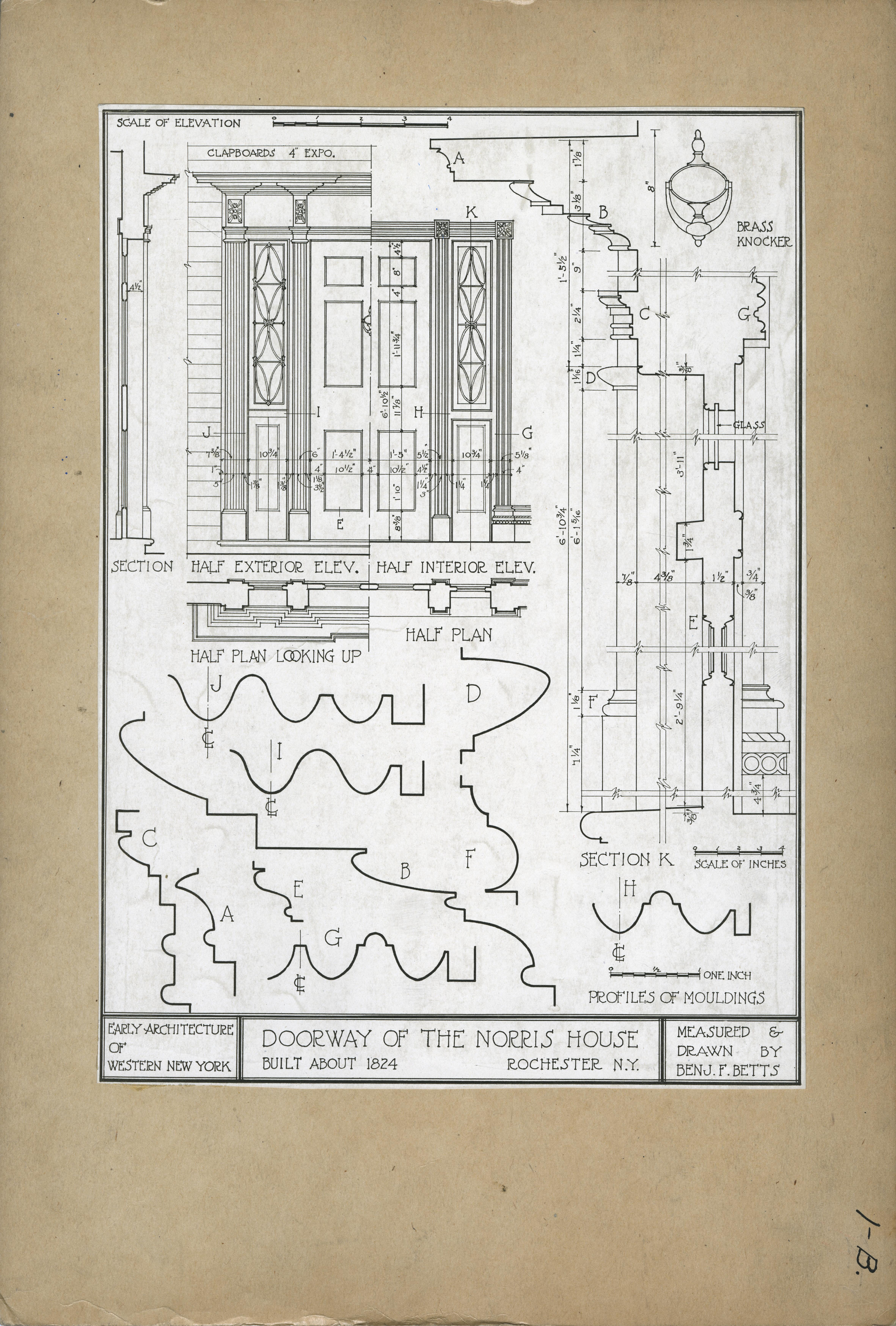 | Description | Location Box 1B Item 55 Doorway of the Norris House, Rochester, New York 1824 Measured and Drawn by Benj. F. Betts |