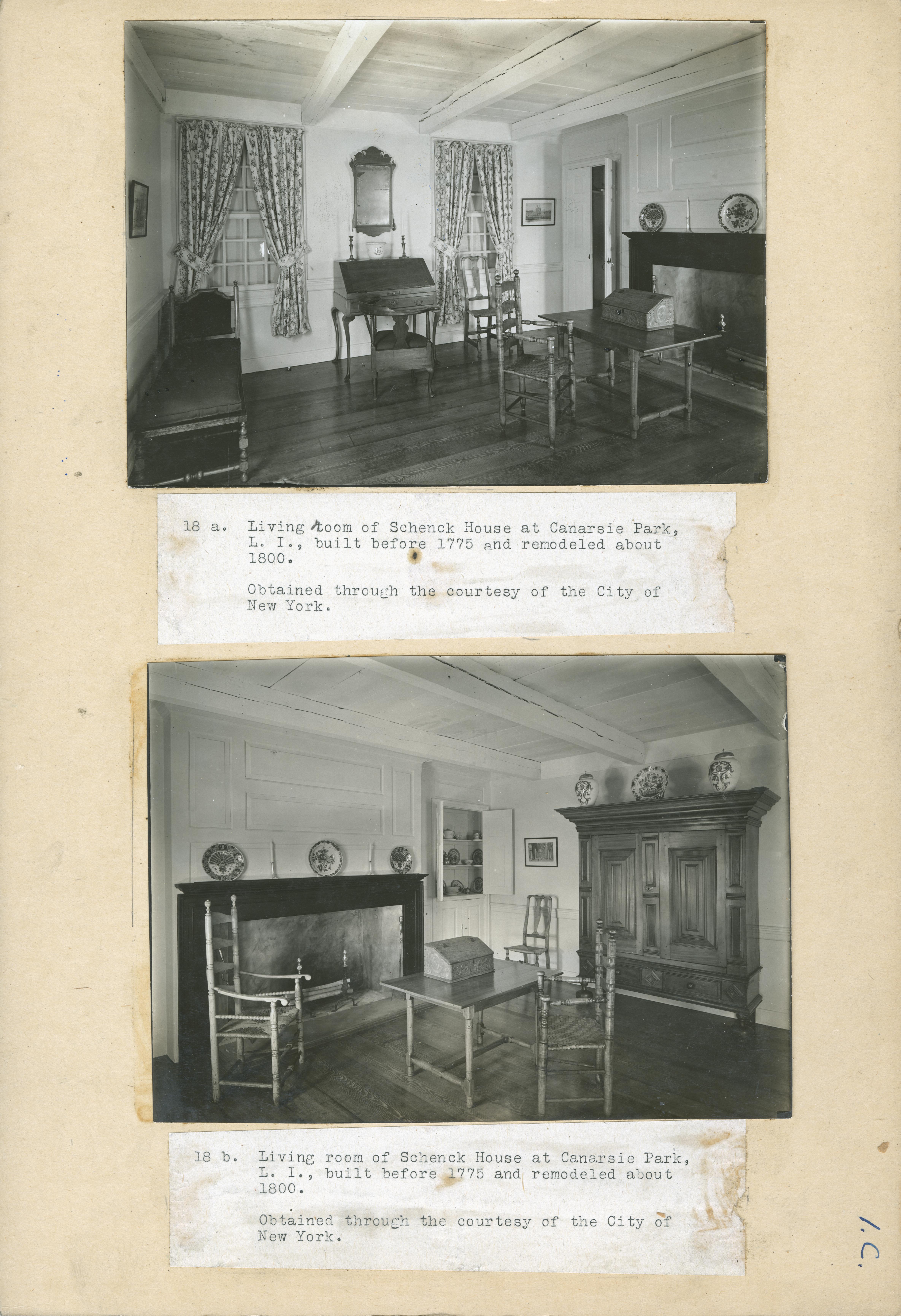 | Description | Location Box 1C Item 16 Living Room of Schenck House, Canarsie Park, Long Island Built before 1775, Remodeled 1800 |