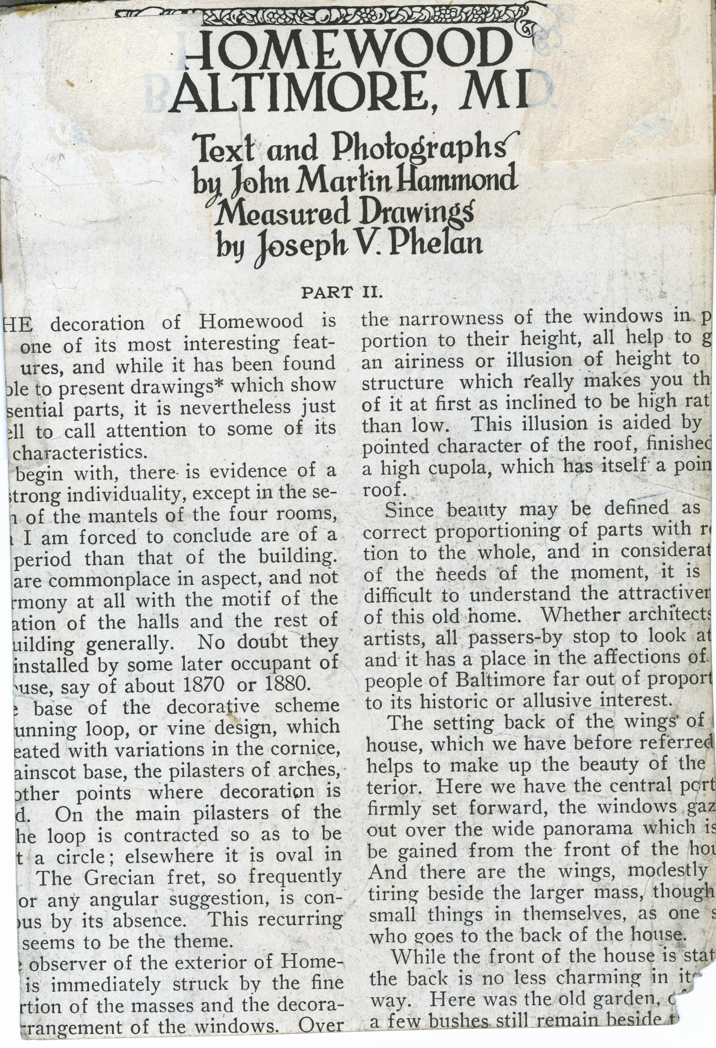 | Description | Location Box 1D Item 11 Page 1 Back Side Homewood, Baltimore, Maryland Article |