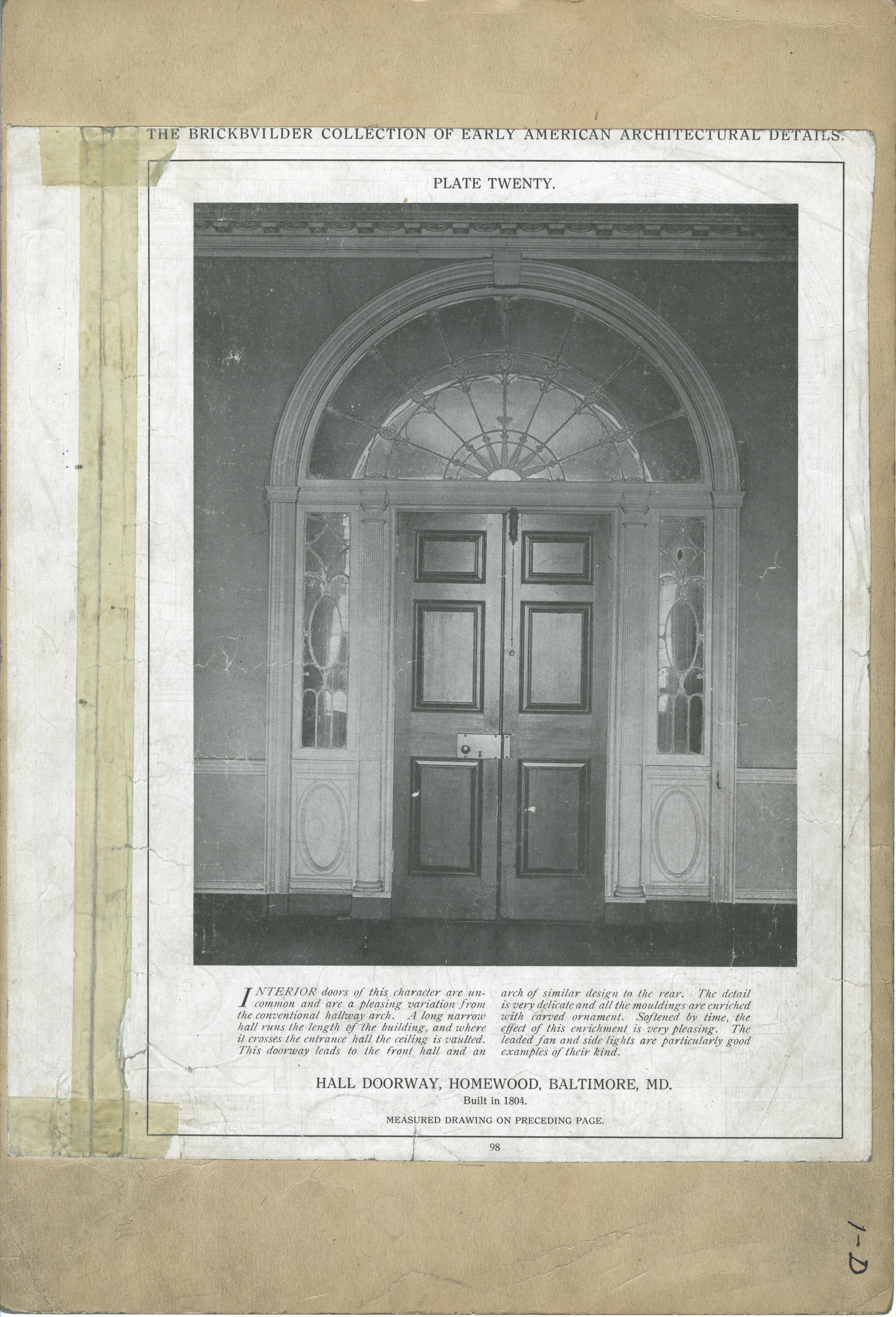 | Description | Location Box 1D Item 21 Front Side Plate Twenty Hall Doorway, Homewood, Baltimore, Maryland |