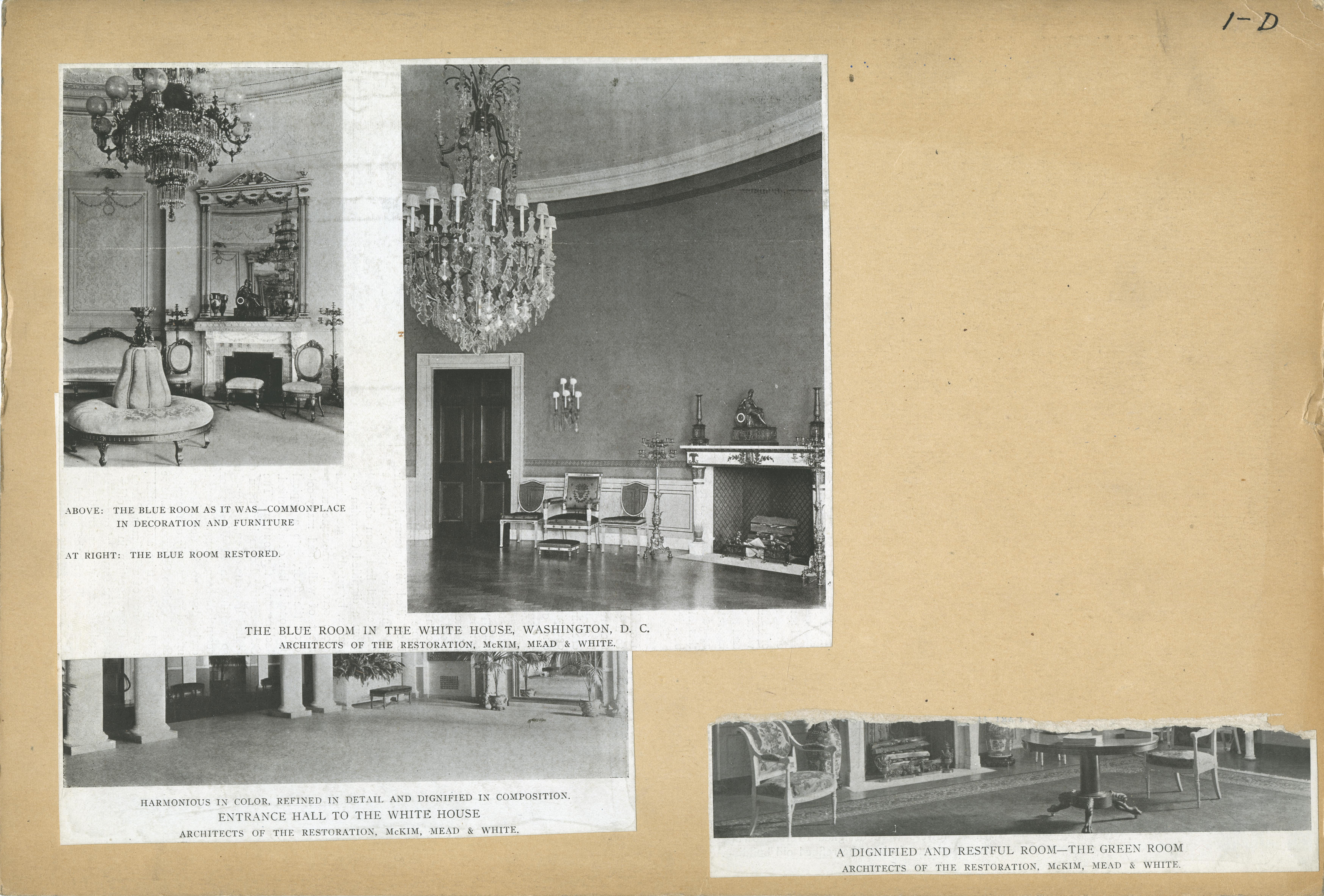 | Description | Location Box 1D Item 3 Front Side The Blue Room, White House Restored McKin, Mead, and White: Architects |