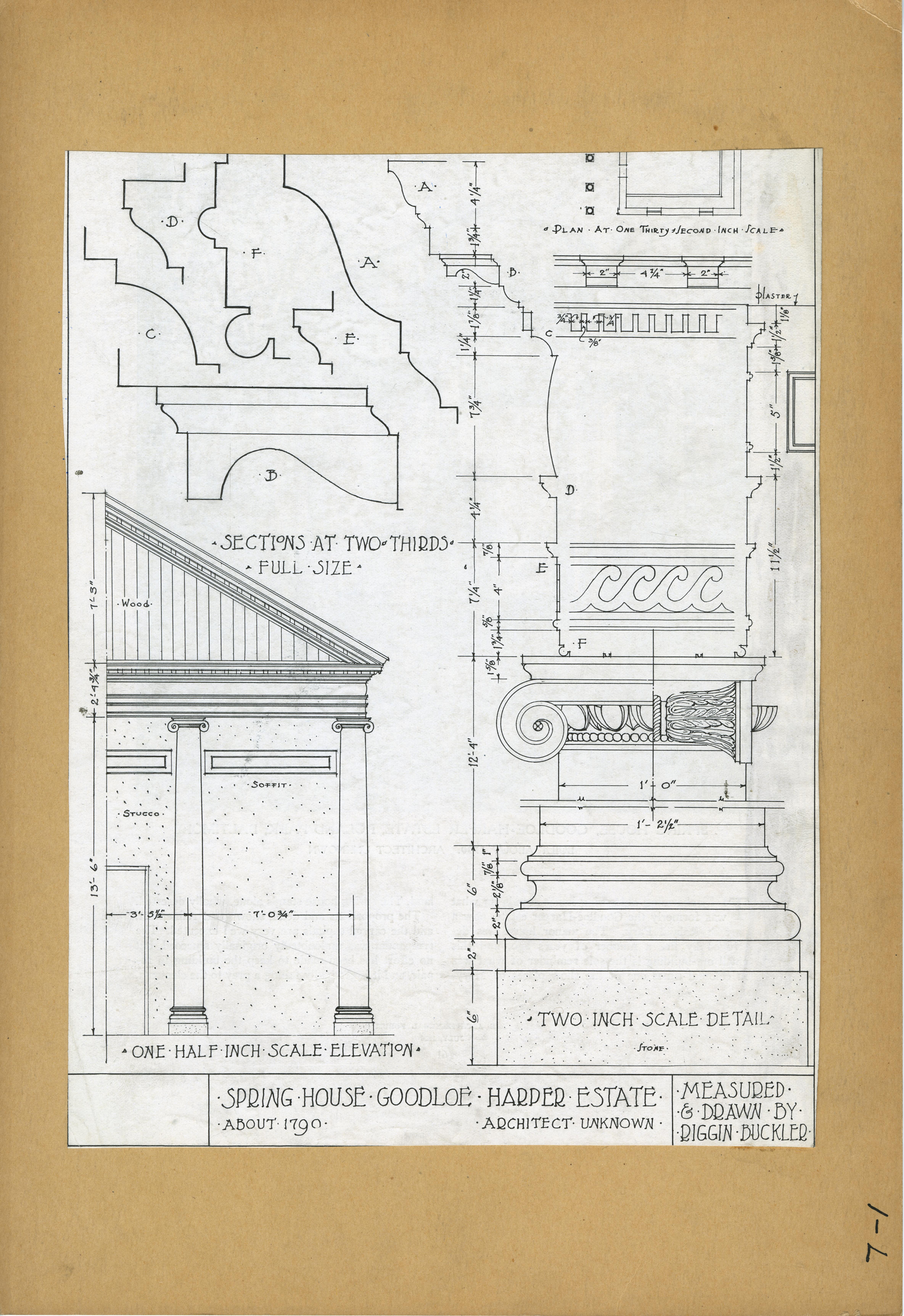 | Description | Location Box 1L Item 1 Spring House Goodloe Harper Estate 1790 Measured and Drawn by Riggin Buckler |