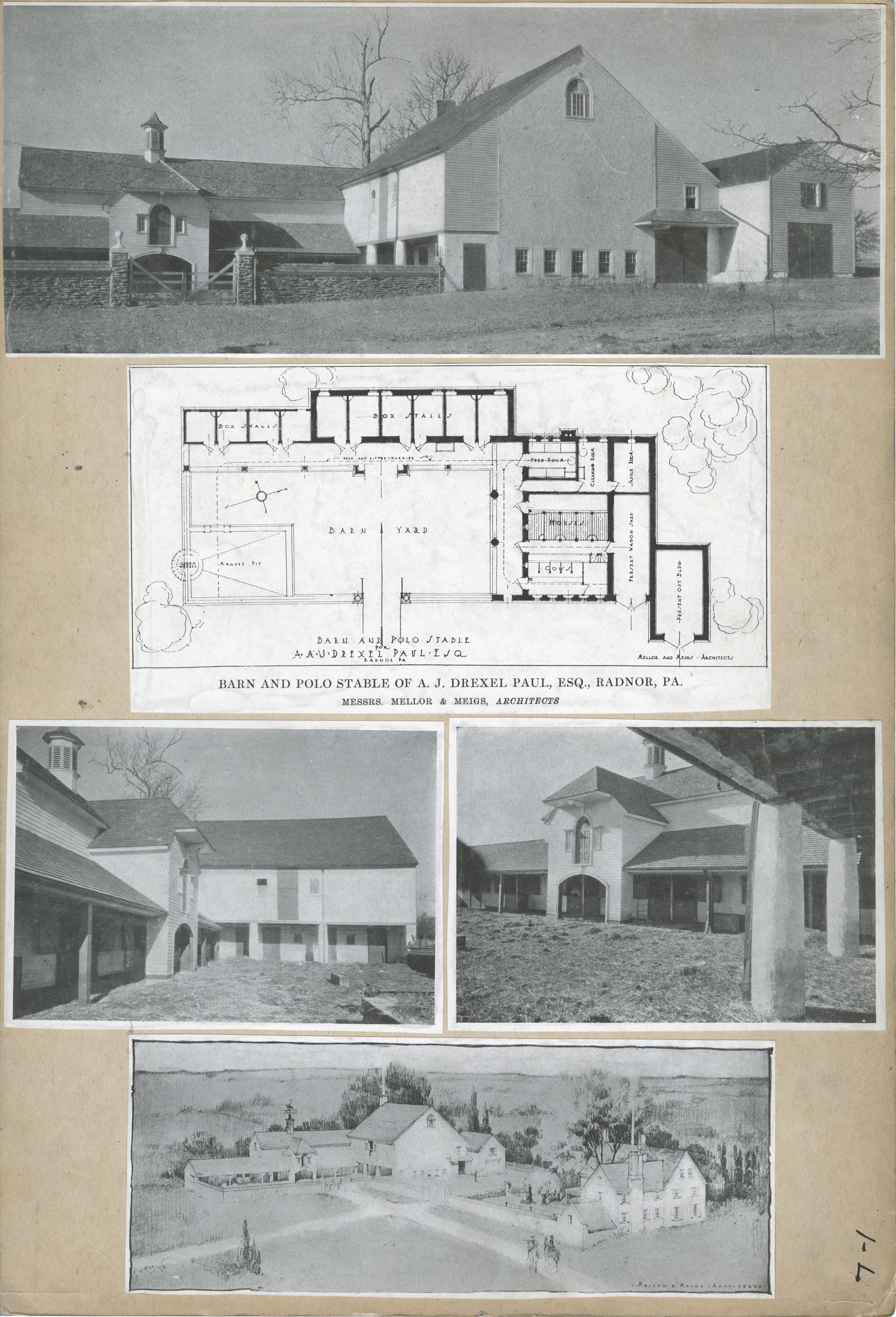 | Description | Location Box 1L Item 7 Barn and Polo Stable of A. J. Drexel Paul, Esquire, Radnor, PA Messrs. Mellor and Meior, Architects |