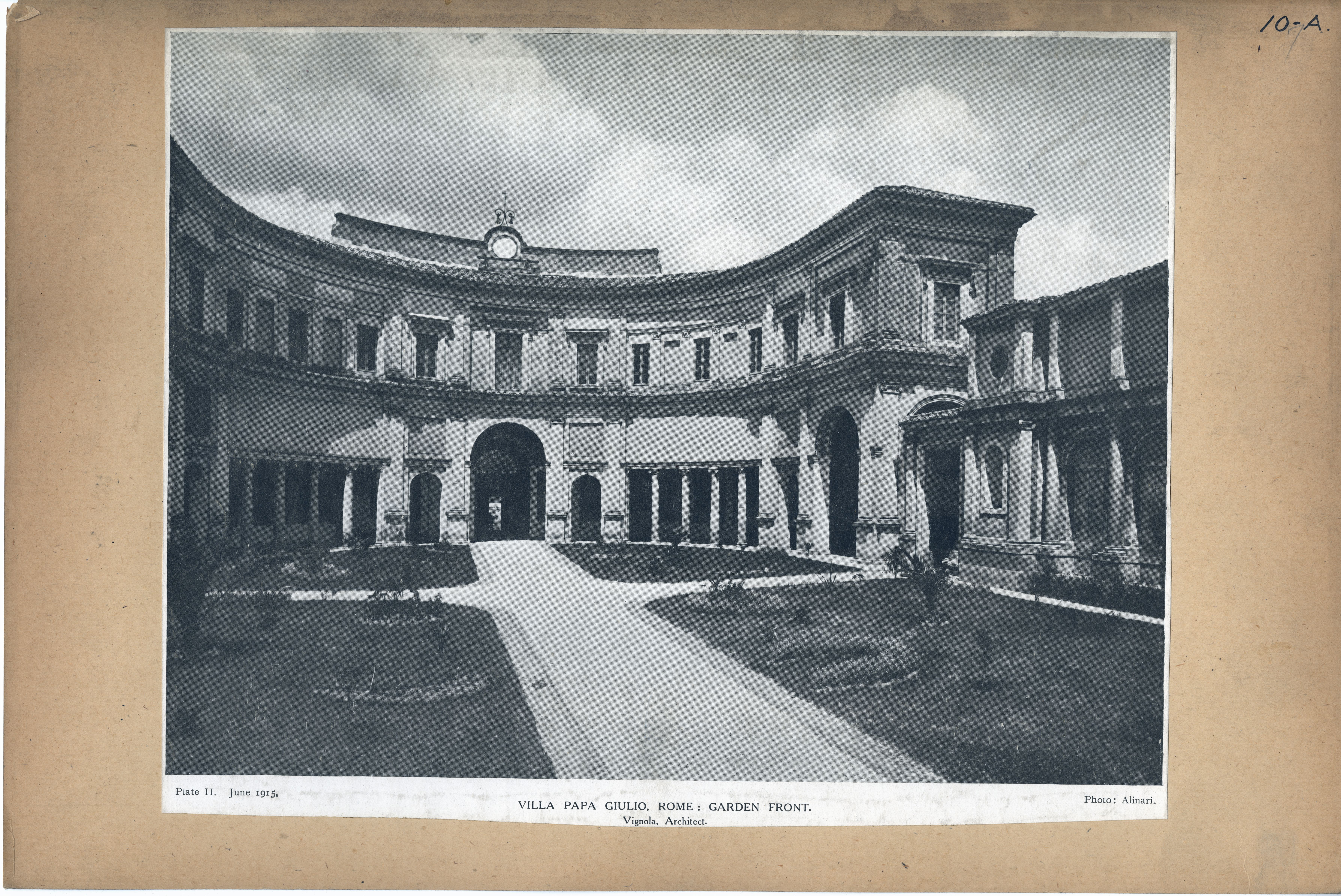 | Description | Location Box 10A Item 23 Plate II. June 1915 Villa Papa Giulio, Rome : Garden Front. Vignola, Architect |