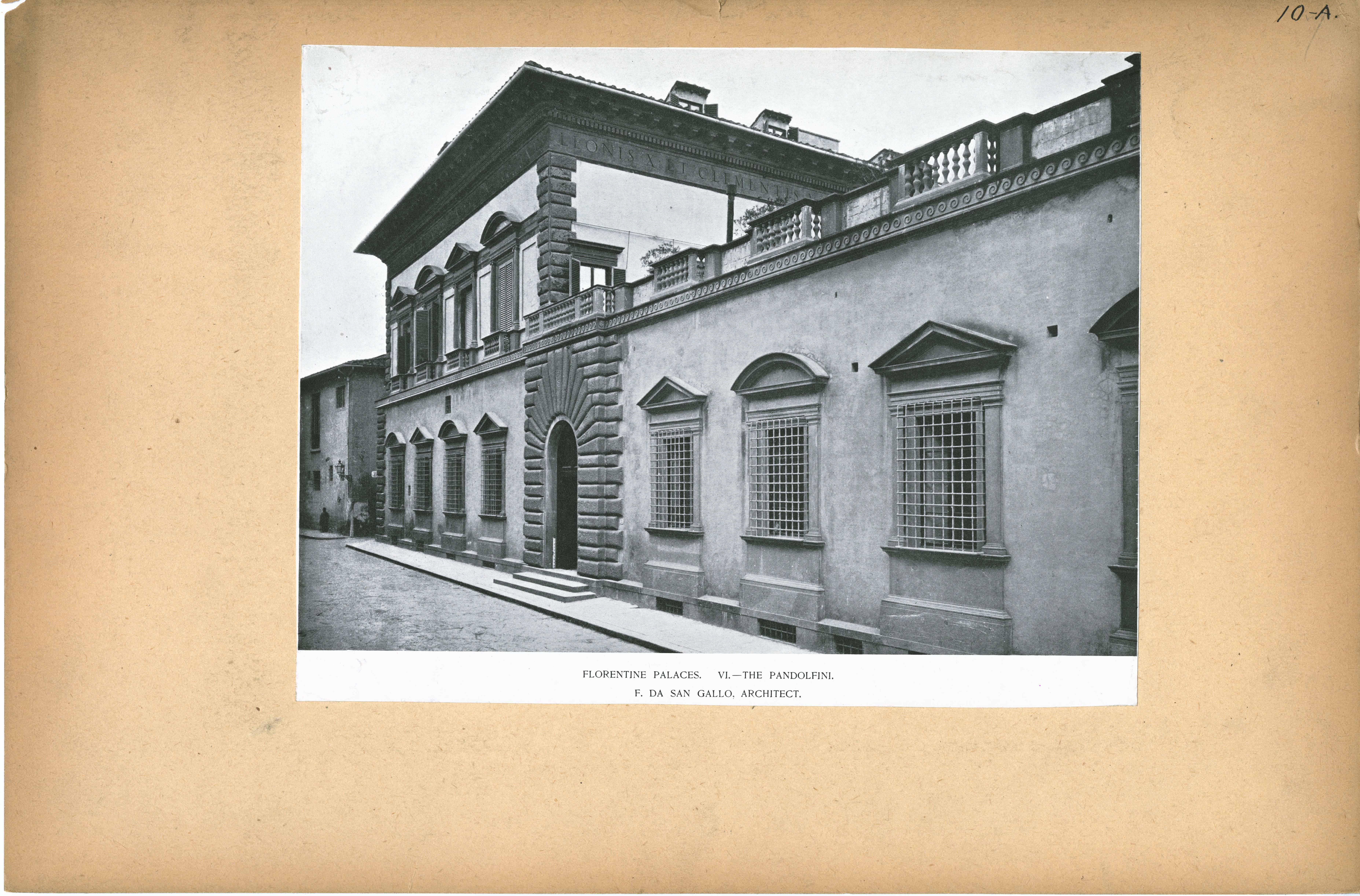 | Description | Location Box 10A Item 30 Florentine Palaces. VI.-- the Pandolfini F. D San Gallo, Architect |
