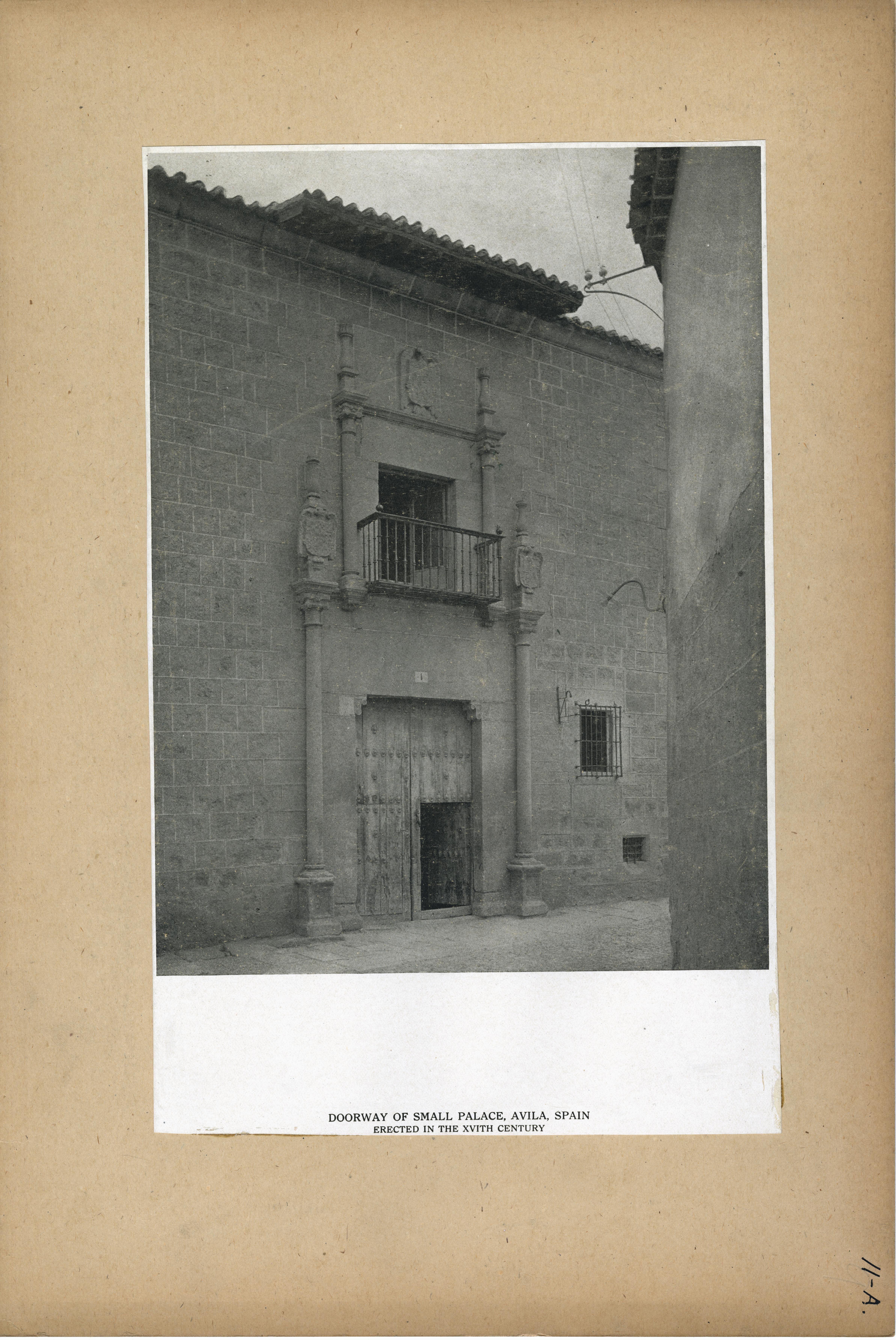 | Description | Location Box 11A File 12 Doorway of Small Palace, Avila, Spain Erected in the XVIth century |