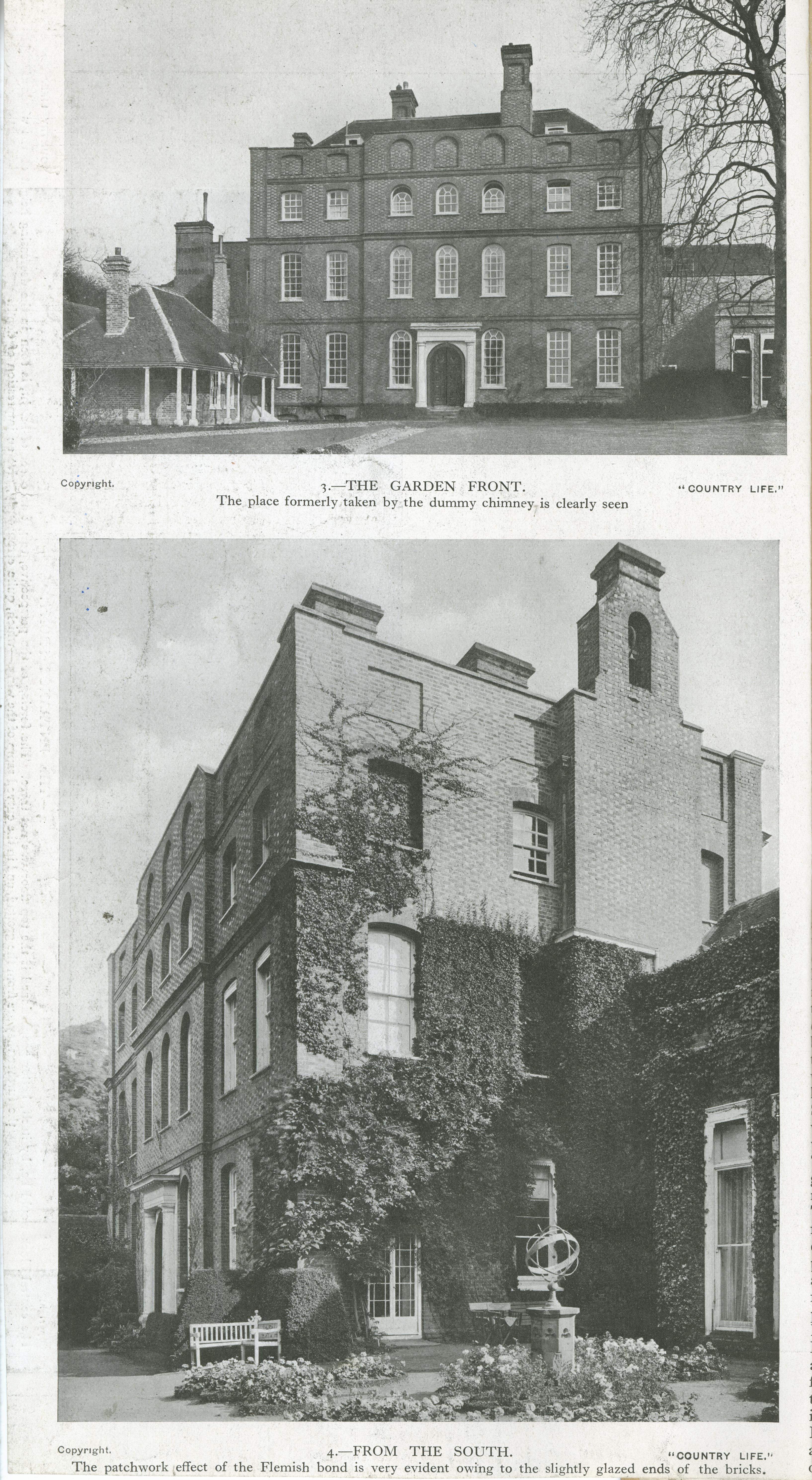 | Description | Location Box 3A Item 11 Page 1 Back Side The Garden Front From the South Article in "Country Life" |