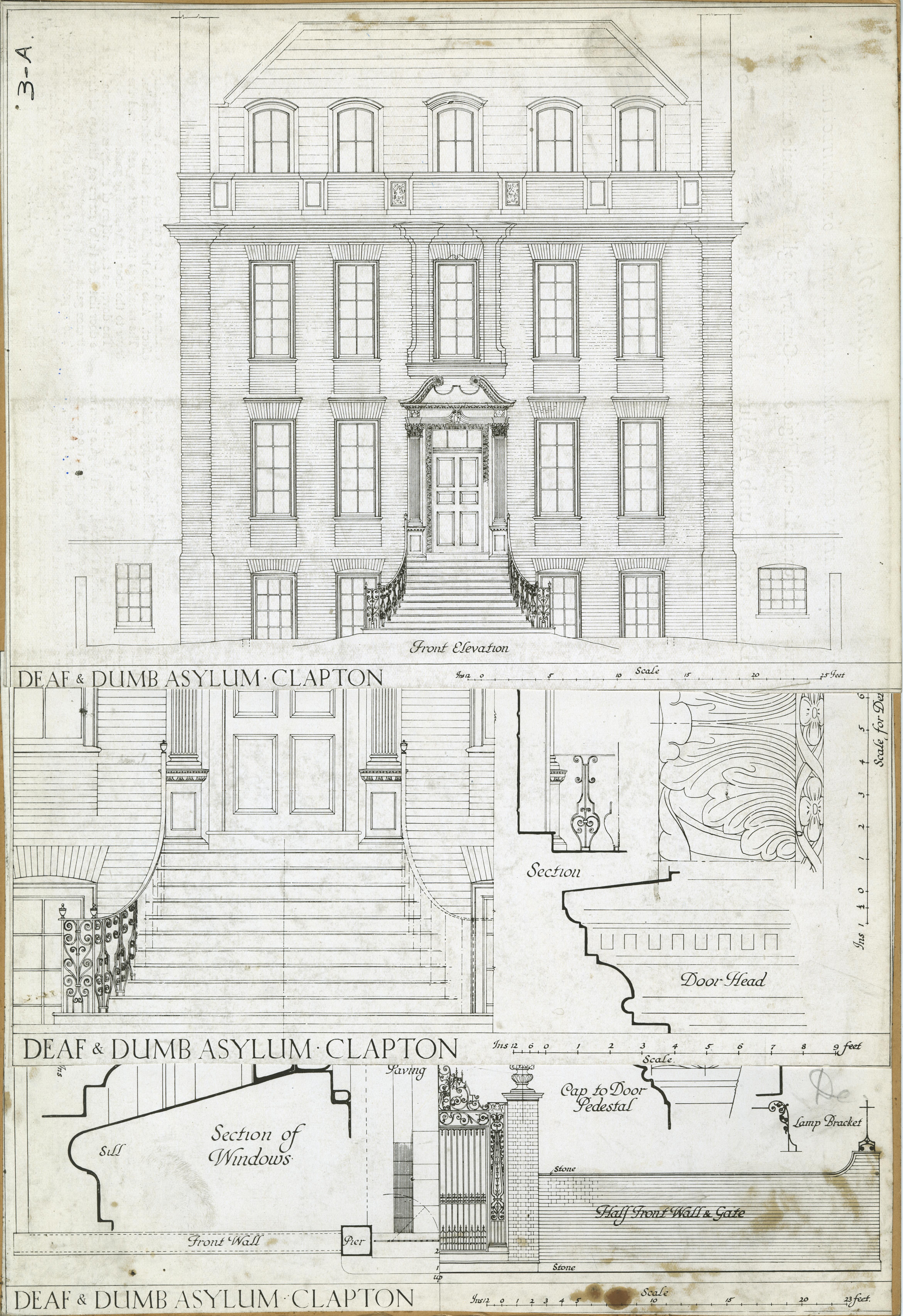 | Description | Location Box 3A Item 21 Page 1 Front Side Deaf & Dumb Asylum, Clapton Front Elevation |