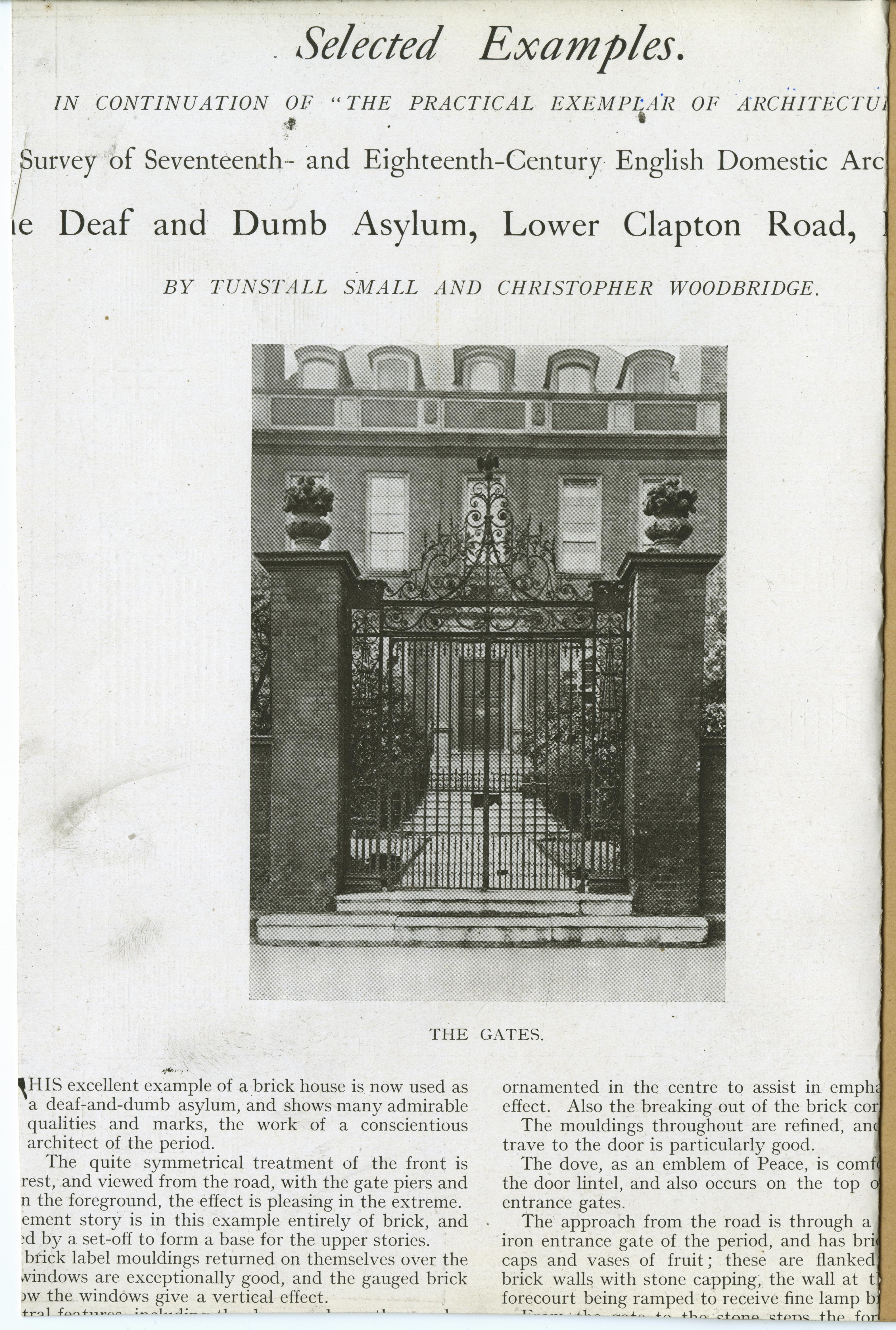| Description | Location Box 3A Item 21 Page 1 Back Side Deaf & Dumb Asylum, Clapton- Article The Gates |