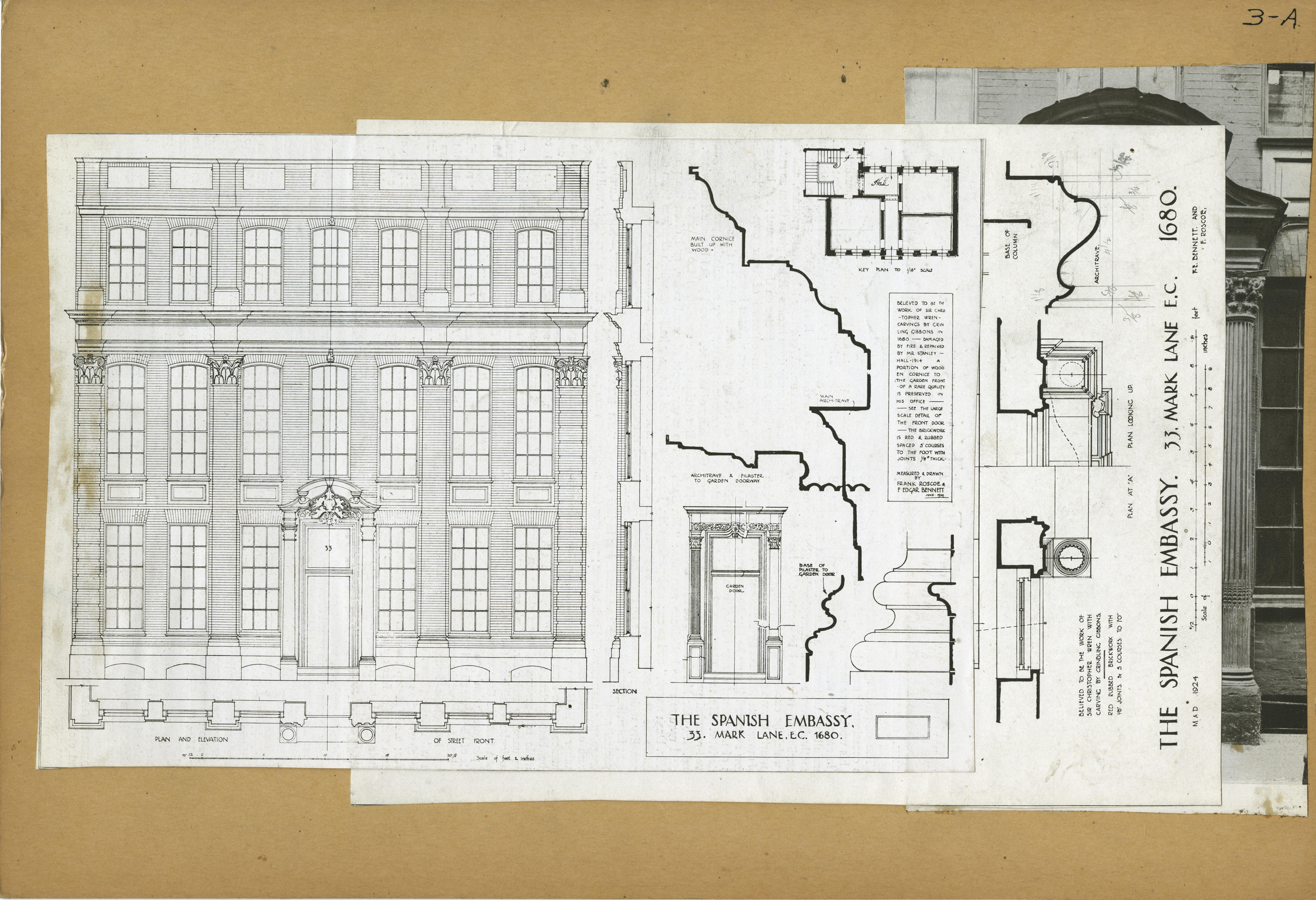 | Description | Location Box 3A Item 4 Page 1 Front Side The Spanish Embassy Elevation Measured and Drawn by Frank Roscoe and F. Edgar Bennett June 1934 |