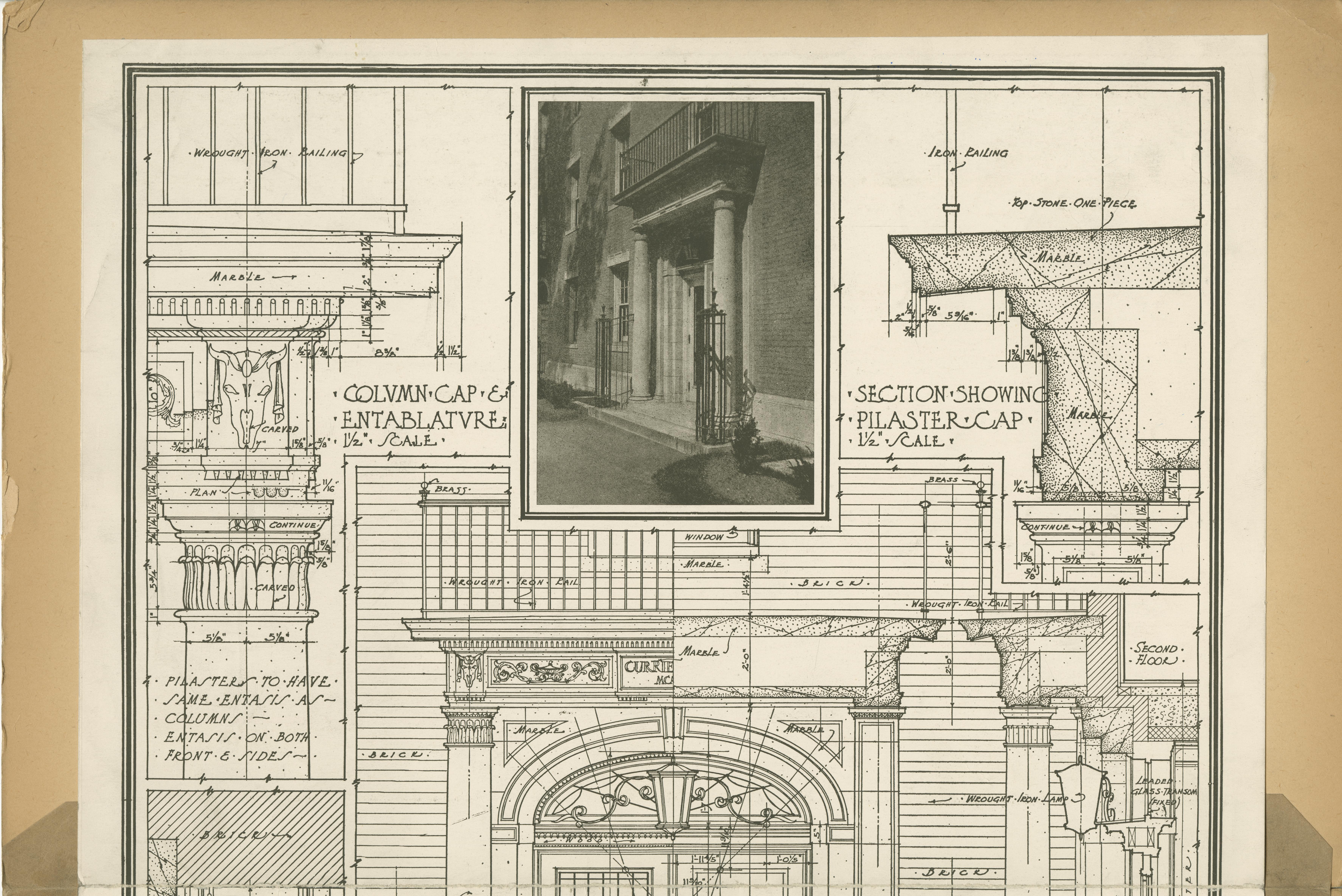 | Description | Location Box 3A Item 76 Top Half Main Entrance to Currier Hall Williams College; Williamstown, Massachusetts John Oakman, Architect, New York City Drawing No. 20, February 1914 Drawn by Walter McQuade |