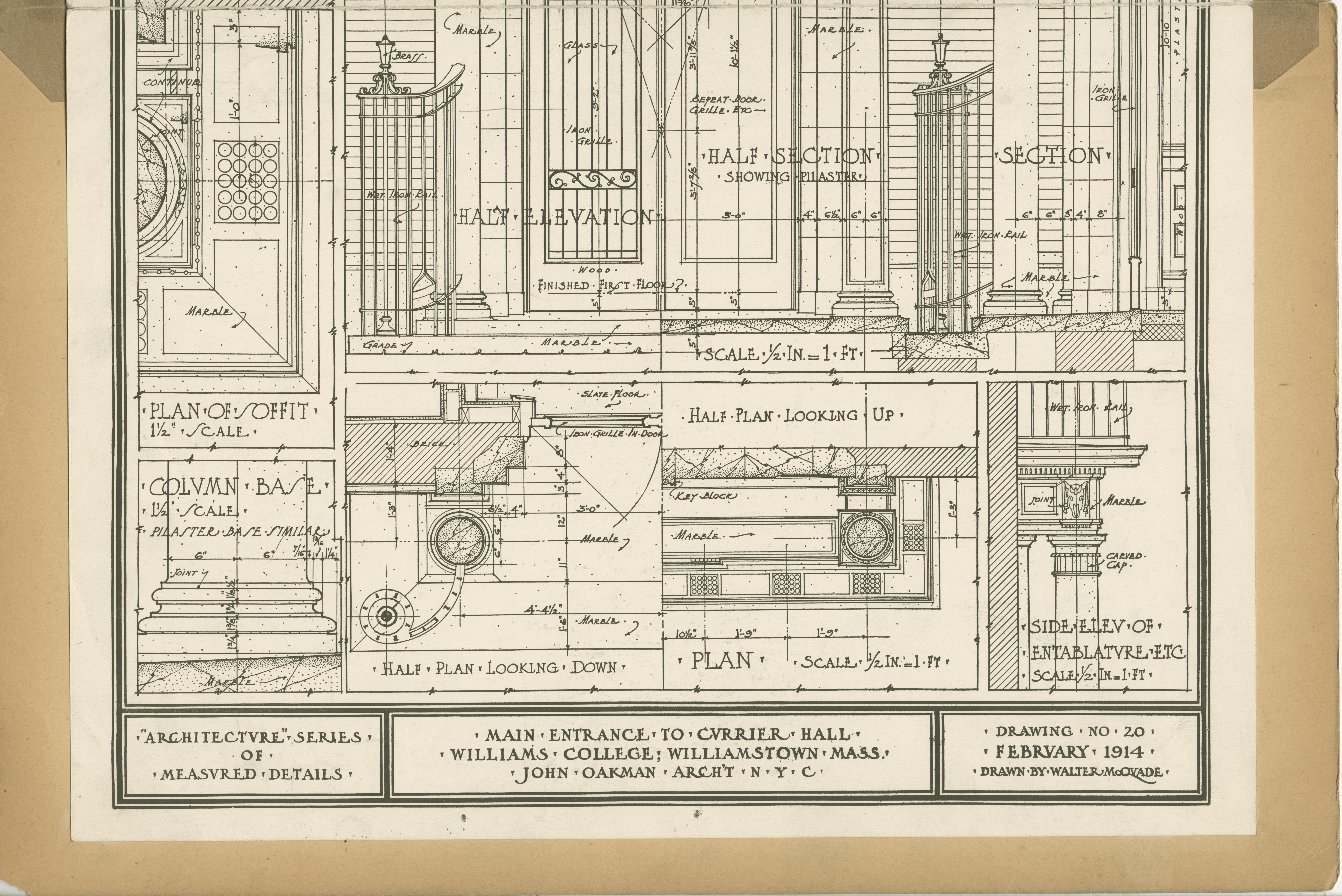 | Description | Location Box 3A Item 76 Bottom Half Main Entrance to Currier Hall Williams College; Williamstown, Massachusetts John Oakman, Architect, New York City Drawing No. 20, February 1914 Drawn by Walter McQuade |