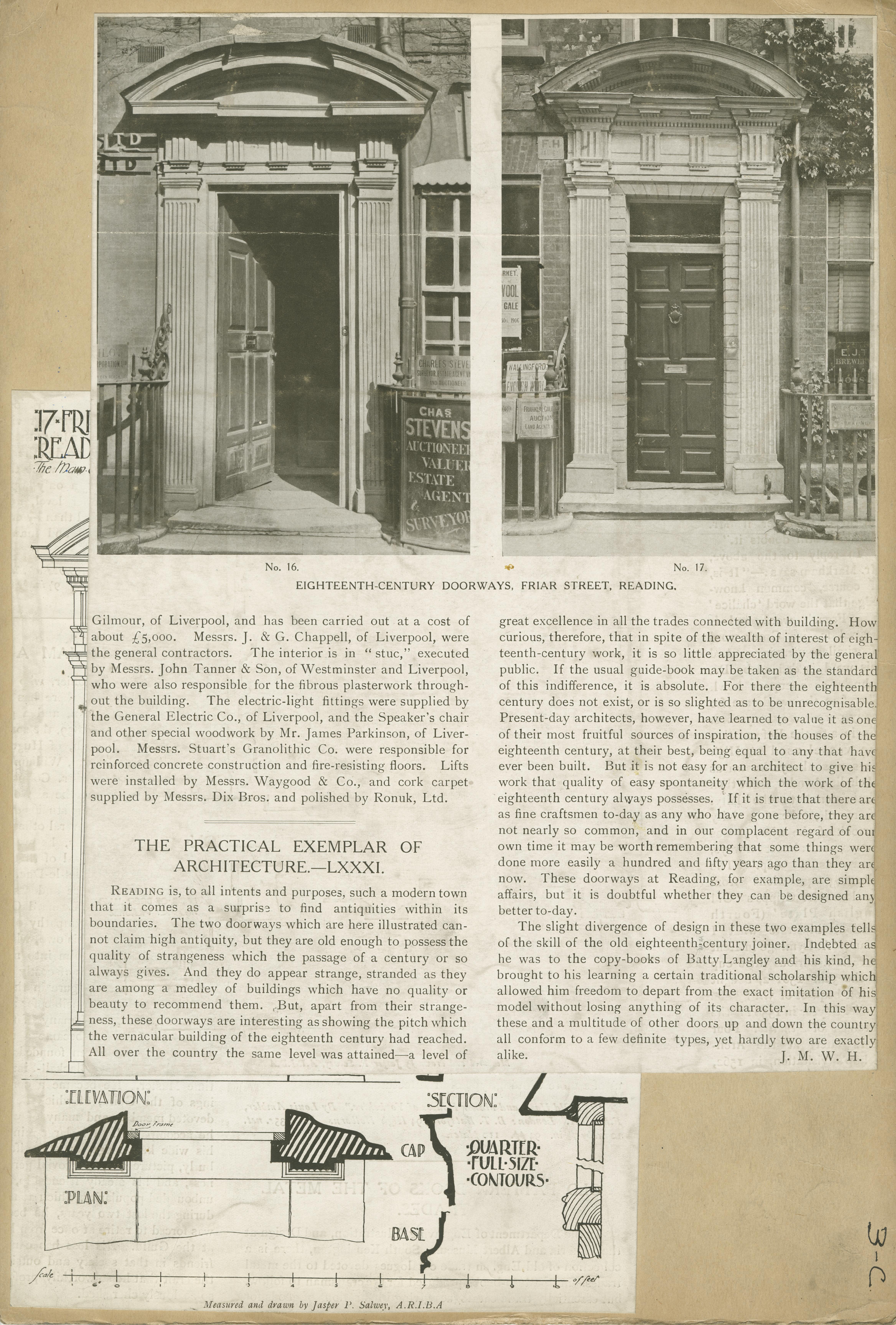 | Description | Location Box 3C Item 15 Page 1 Front Side Eighteenth-Century Doorways, Friar Street, Reading Practical Exemplar of Architecture Article |