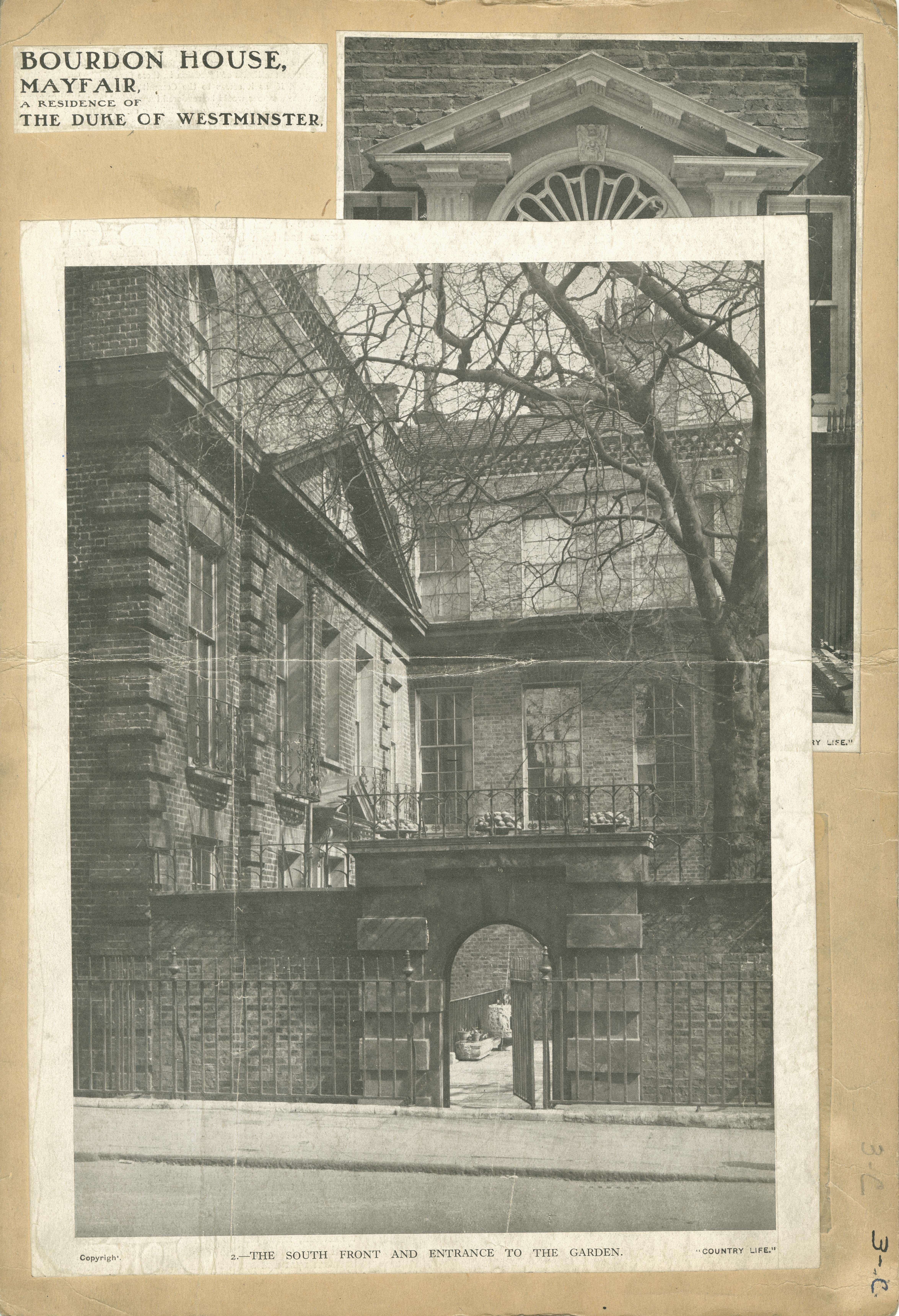 | Description | Location Box 3C Item 5 Page 1 Front Side Bourdon House, Mayfair The Duke of Westminster Residence The South Front and Entrance to the Garden |
