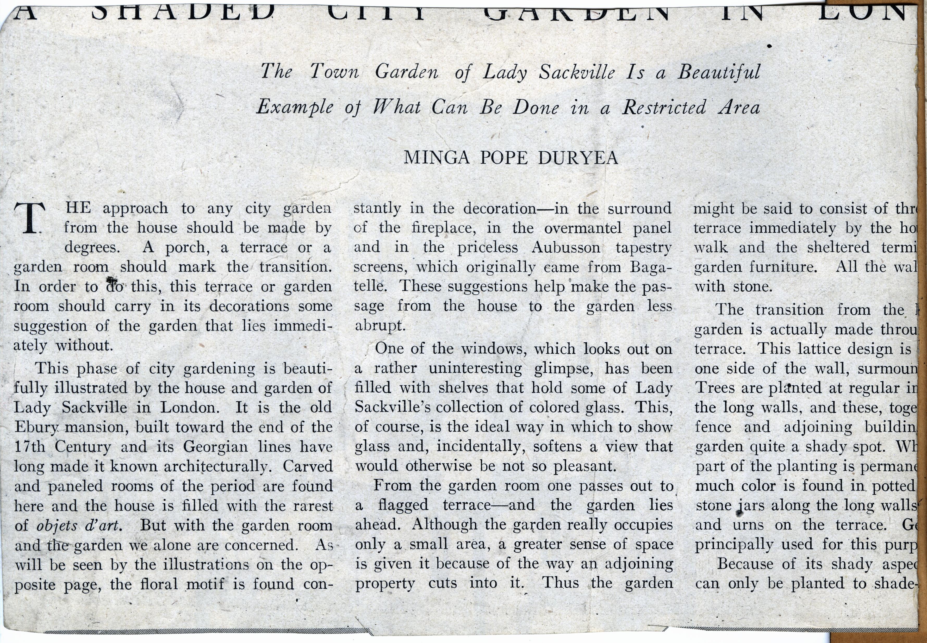 | Description | Location Box 3E Item 67 Page 2 Back Side Lady Sackville's Town Garden Article |