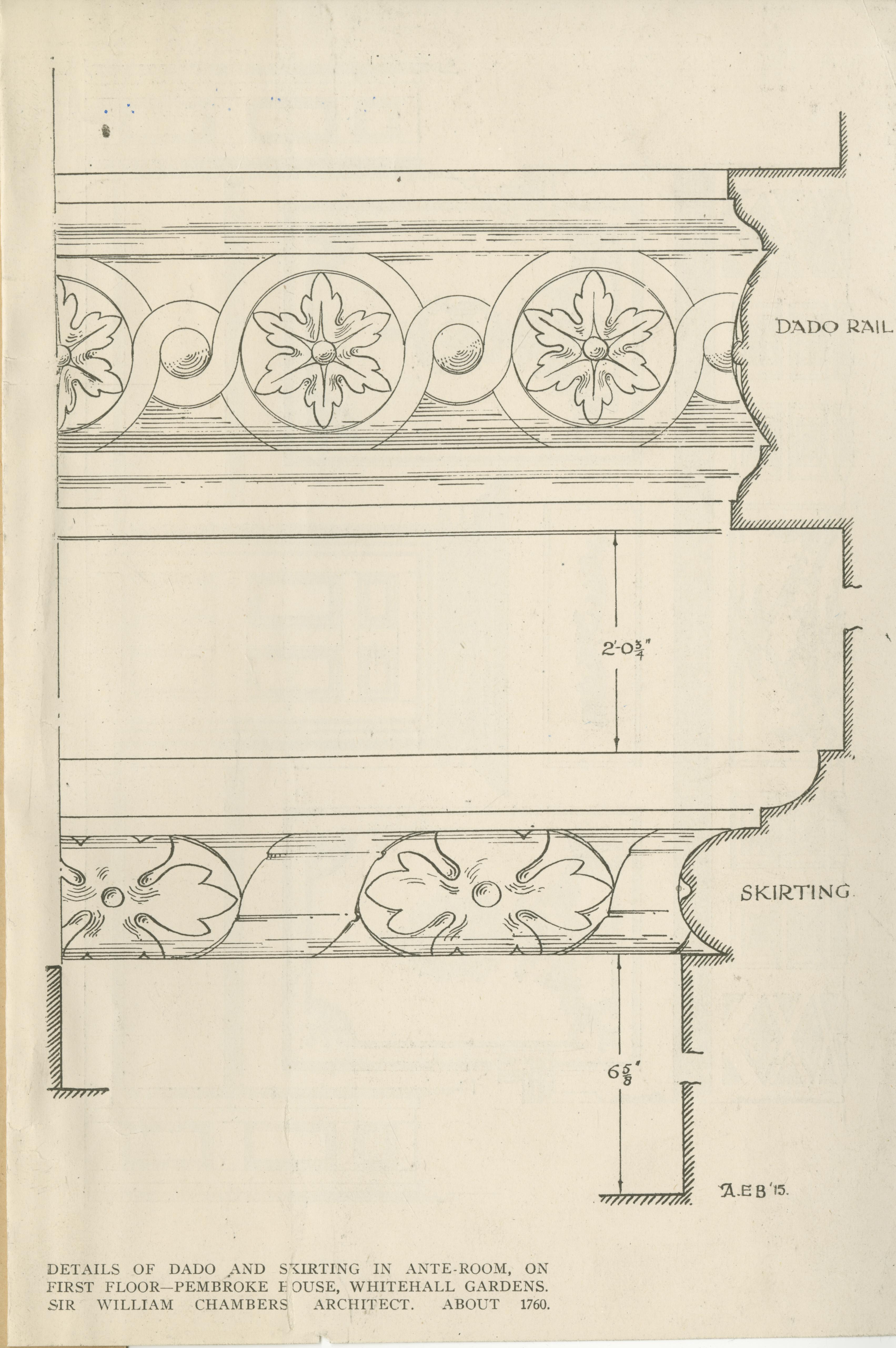 | Description | Location Box 3E Item 78 Page 2 Back Side Details of Dado and Skirting in Ante-Room, First Floor Pembroke House, Whitehall Gardens 1760 Sir William Chambers, Architect |
