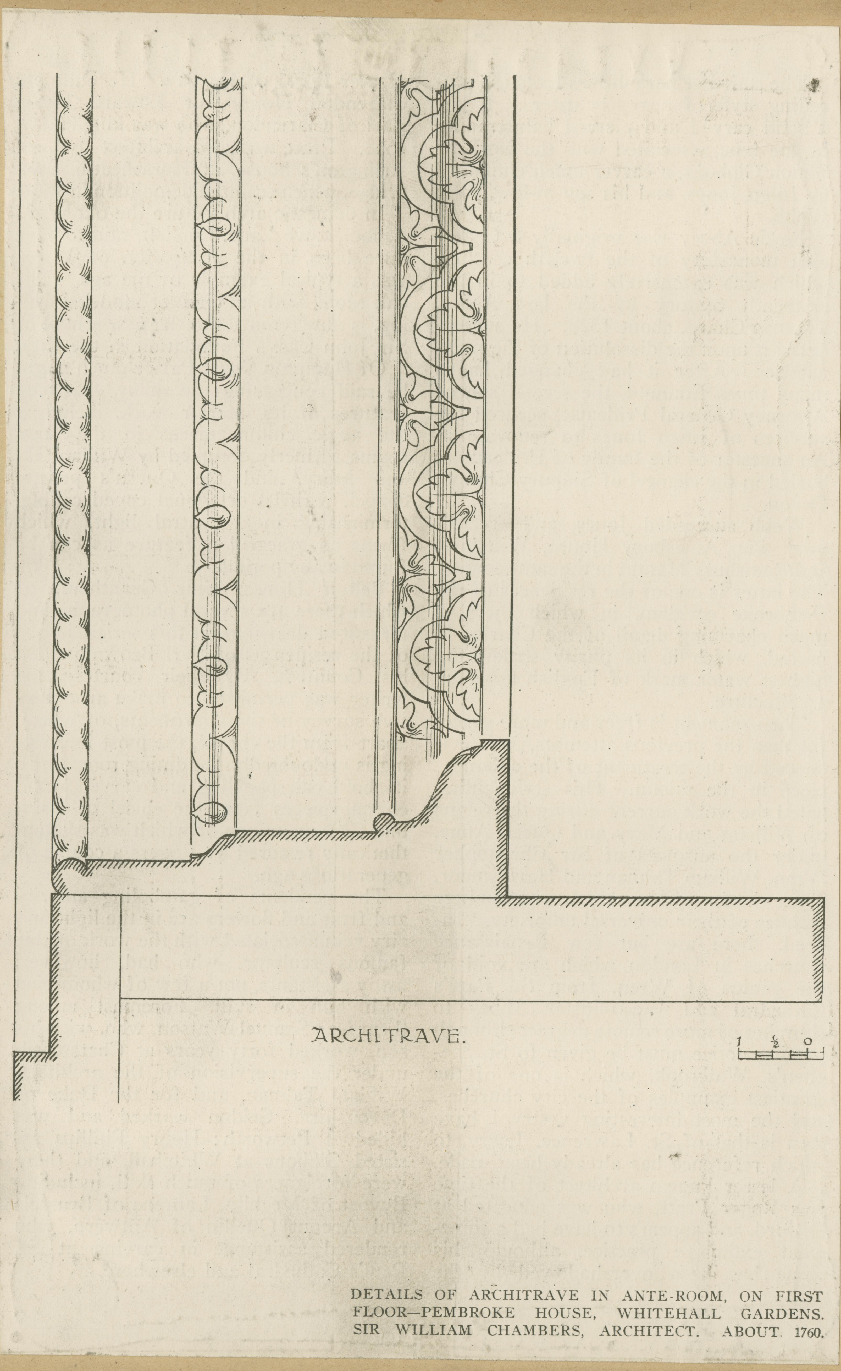 | Description | Location Box 3E Item 78 Page 4 Details of Architrave in Ante-Room, First Floor Pembroke House, Whitehall Gardens 1760 Sir William Chambers, Architect |