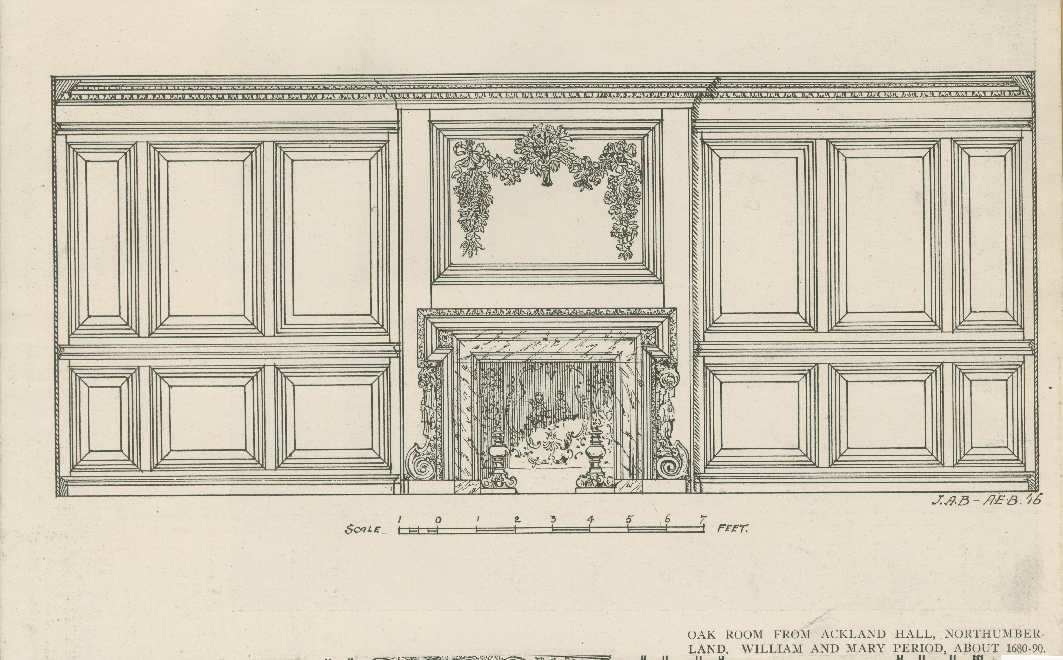 | Description | Location Box 3E Item 79 Page 3 Back Side Oak Room, Ackland Hall, Northumberland William and Mary Period 1680-90 |