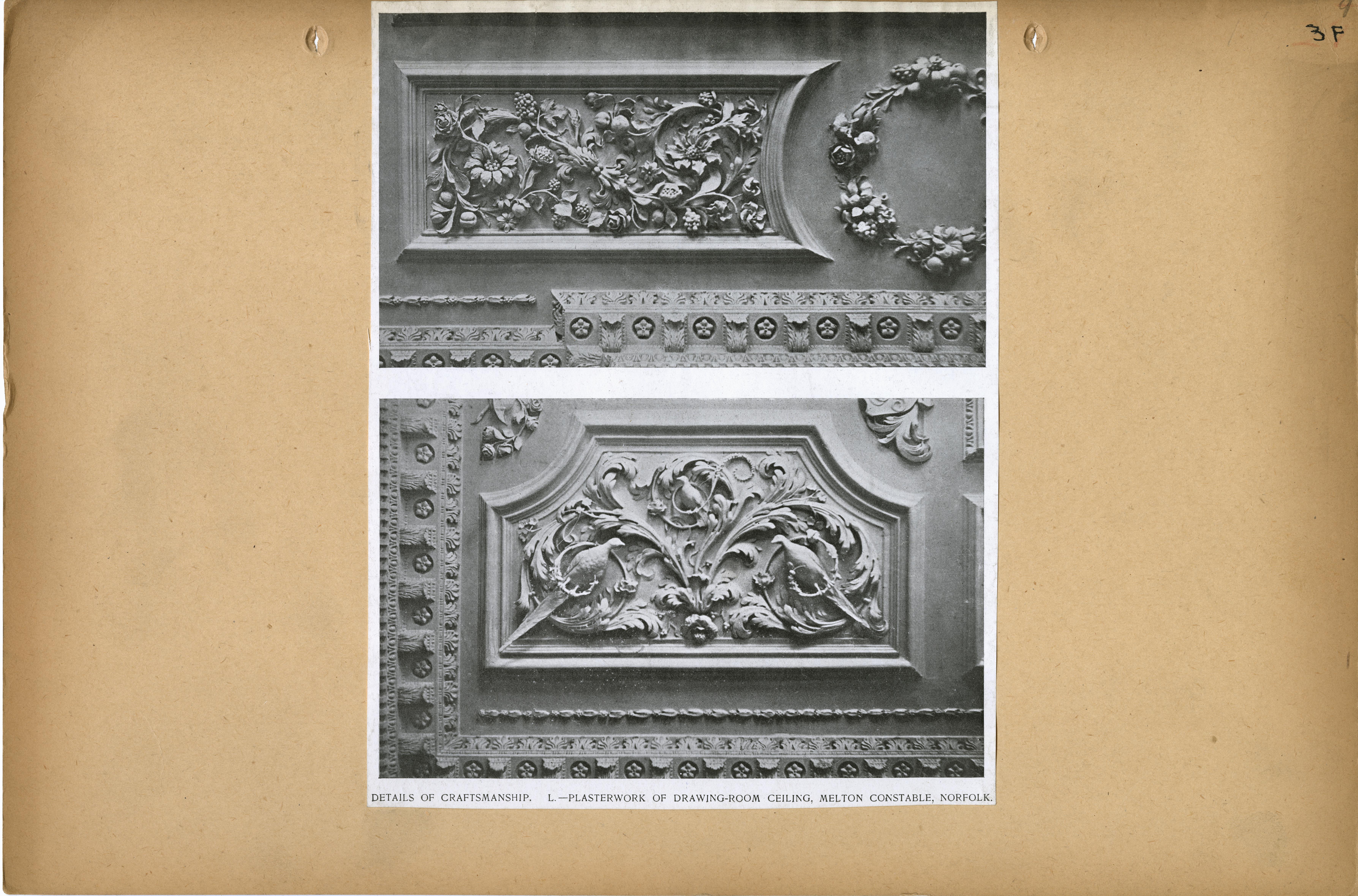 | Description | Location Box 3F File 27 Page 15 Carved lime tree feston over chimney-piece (left) Carved mirror frame (right) |