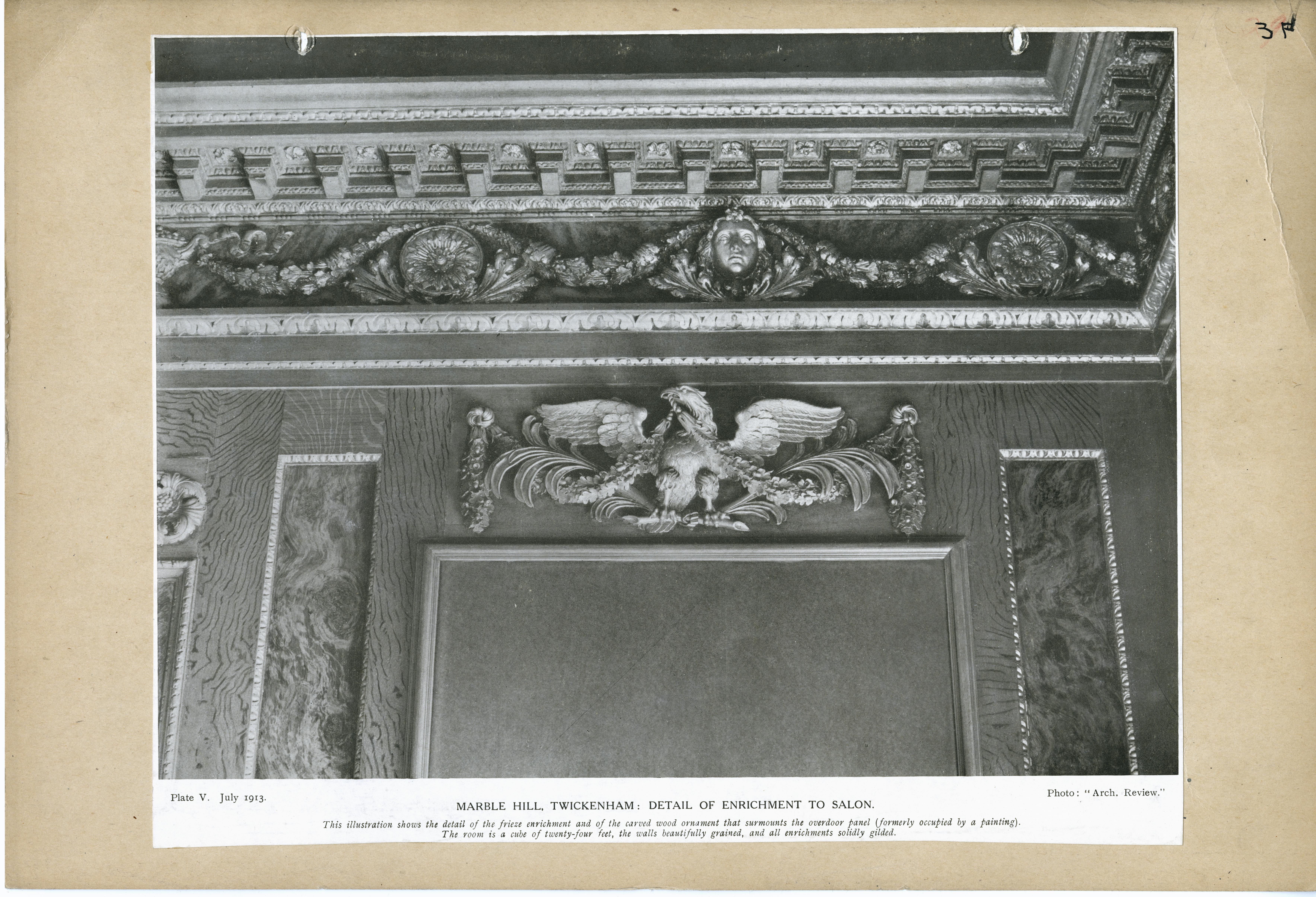 | Description | Location Box 3F Item 27 Page 20 Marble Hill, Twickerham: Detail of enrichment to salon |