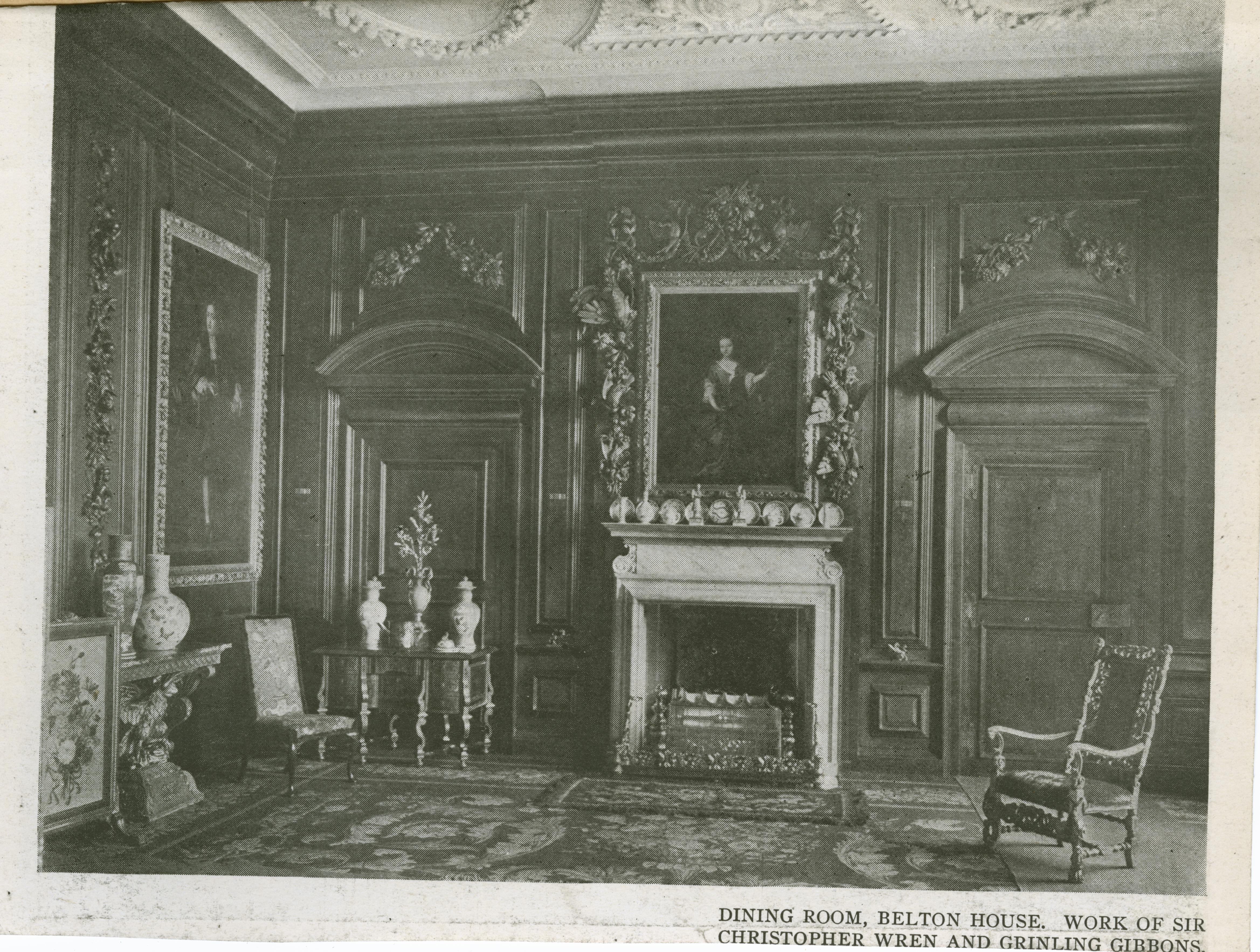 | Description | Location Box 3G Item 53 Page3/Back Side Dining room, Belton House, work of Sir Christopher Wren and Grinling Gibbons |