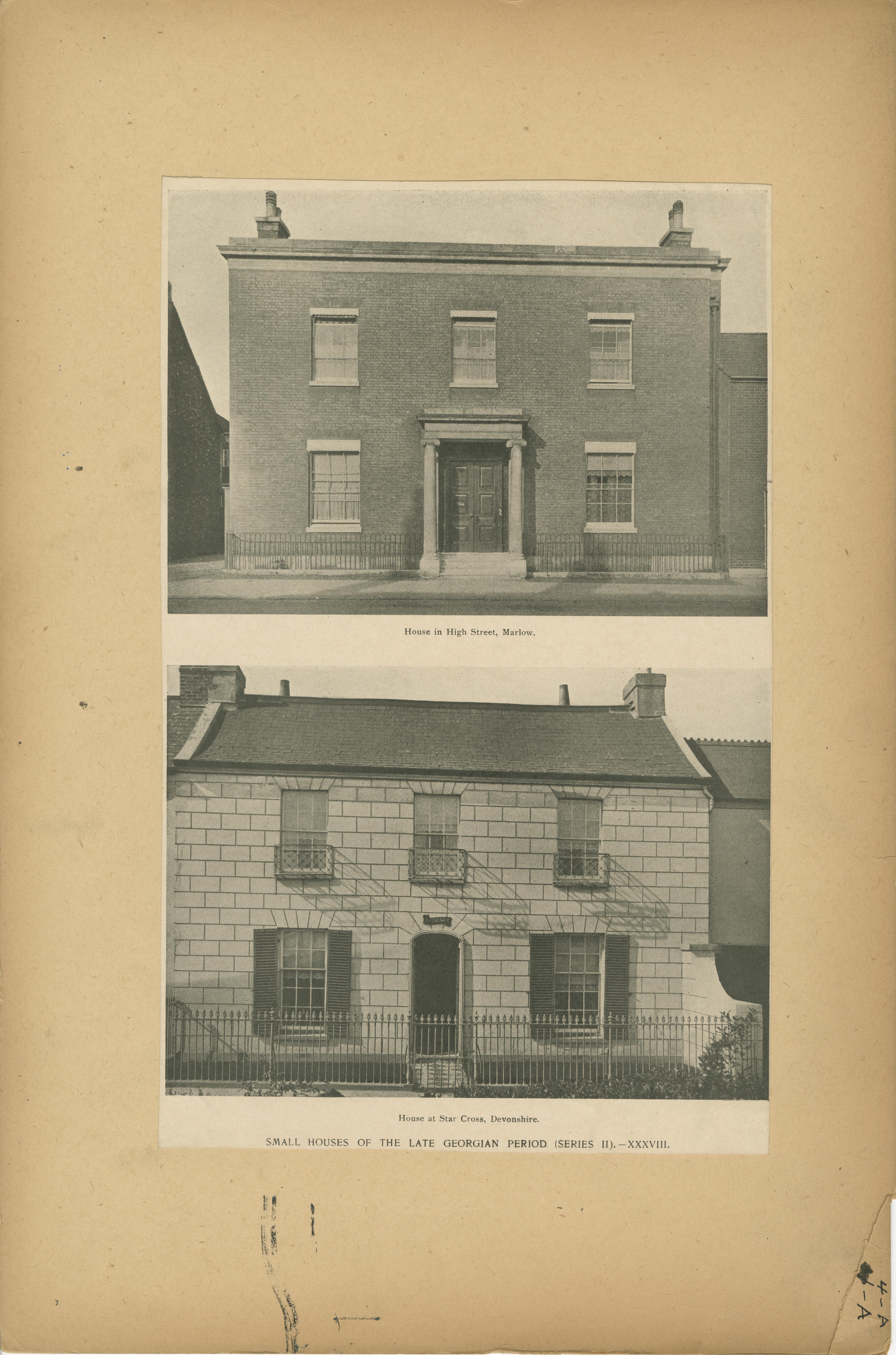 | Description | Location Box 4A File 52 Small Houses of the Late Georgian Period House in High Street, Marlow House at Star Cross, Devonshire |
