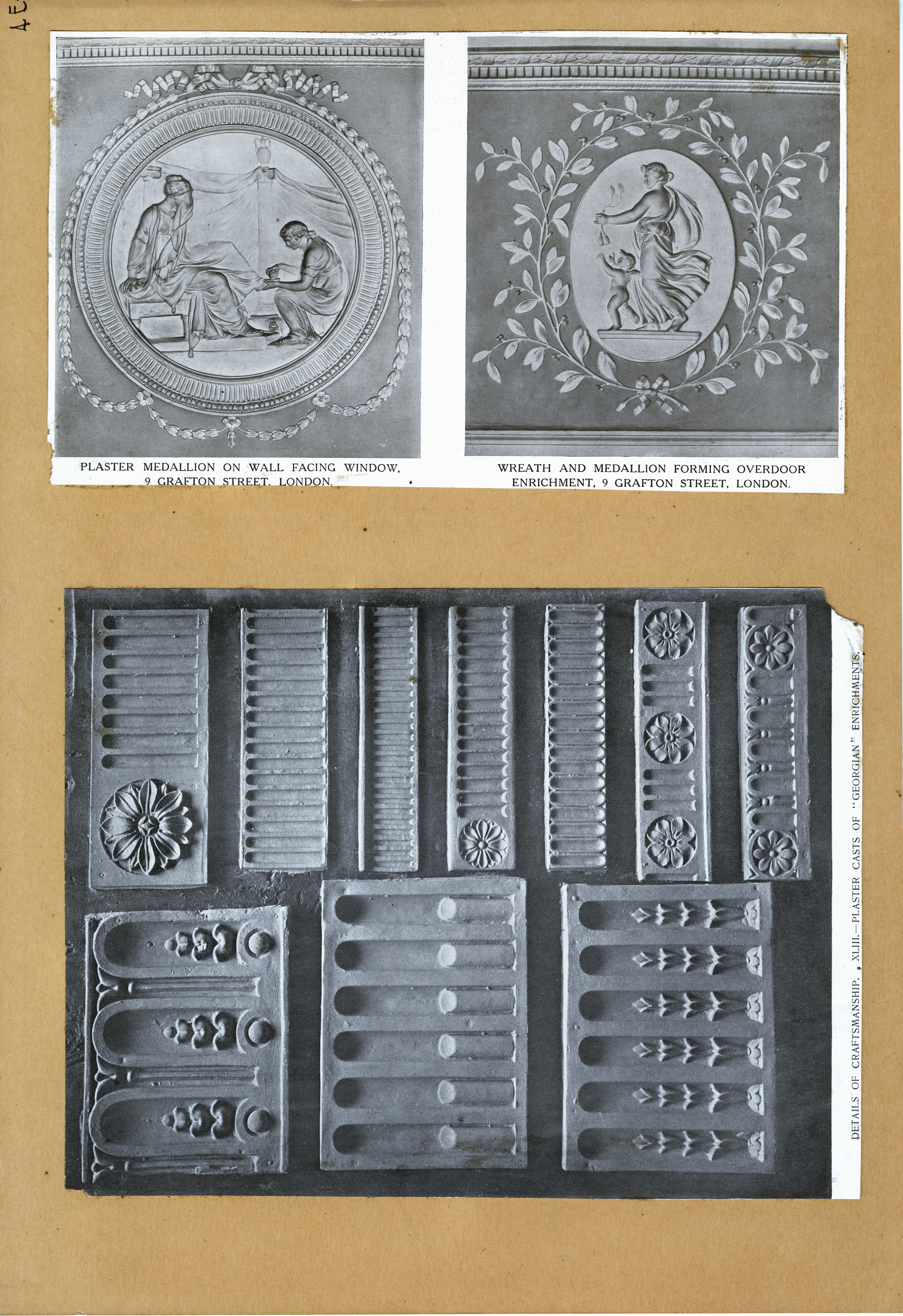 | Description | Location Box 4E Item 15 Plaster medallion on wall facing window. 9 Grafton Street, London Wreath and medallion forming overdoor enrichment, 9 Grafton street, London Plaster casts of "Georgian" enrichments |