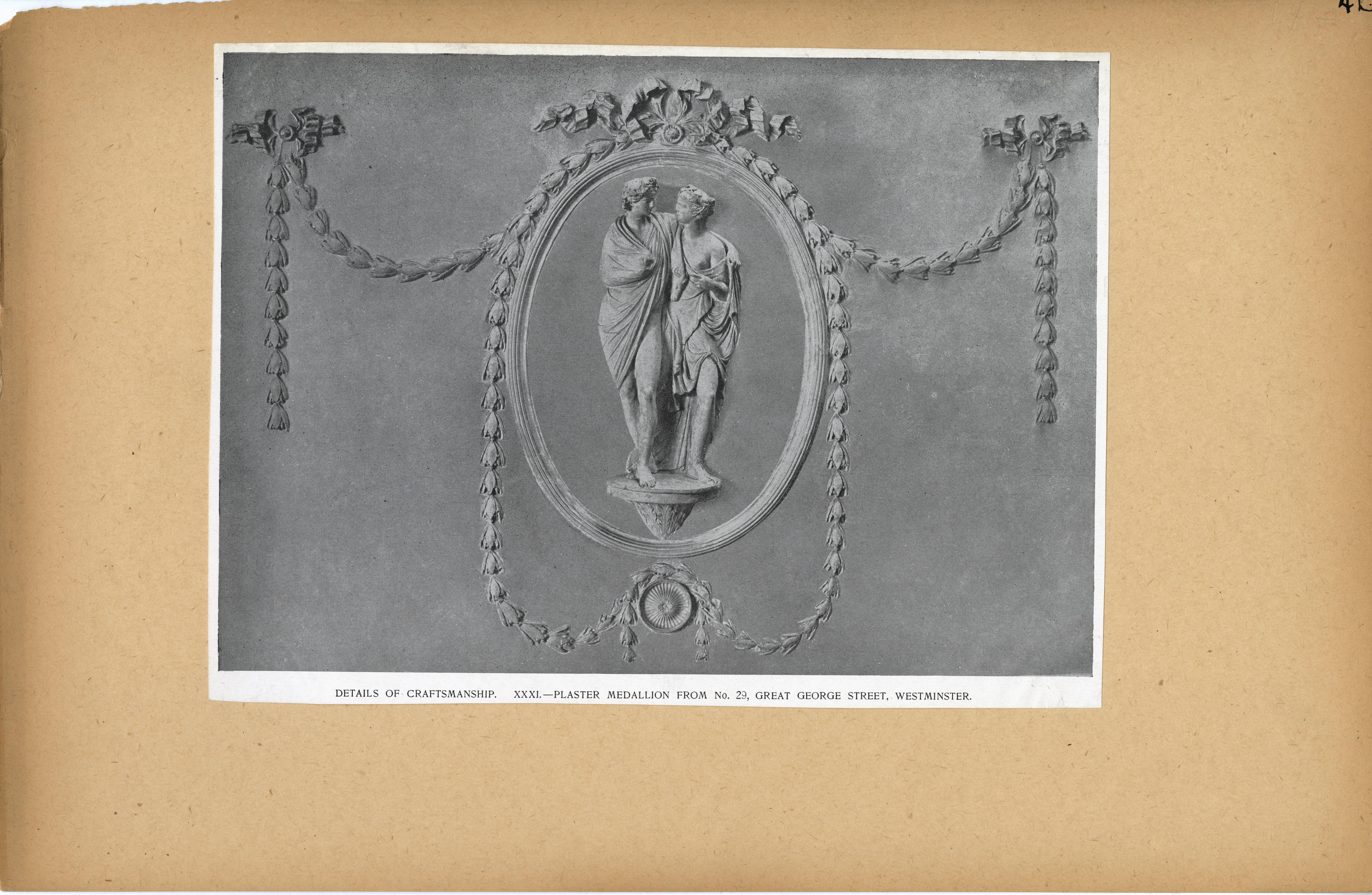 | Description | Location Box 4E Item 30 Plaster medallion from No. 29, Great George Street, Westminster |