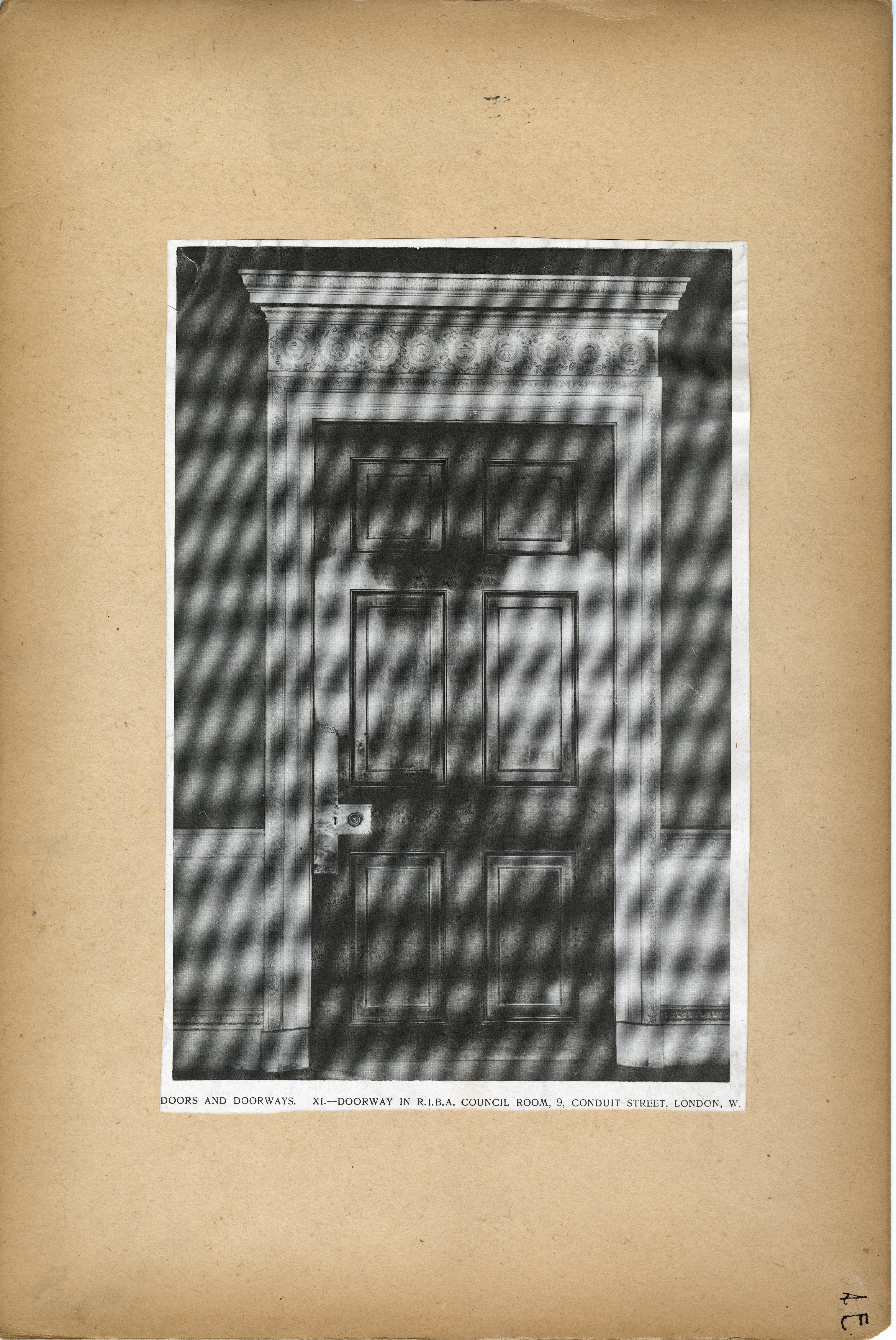 | Description | Location Box 4E Item 8 Doorway in R.I.B.A council room, 9, Conduit Street, London, W. |