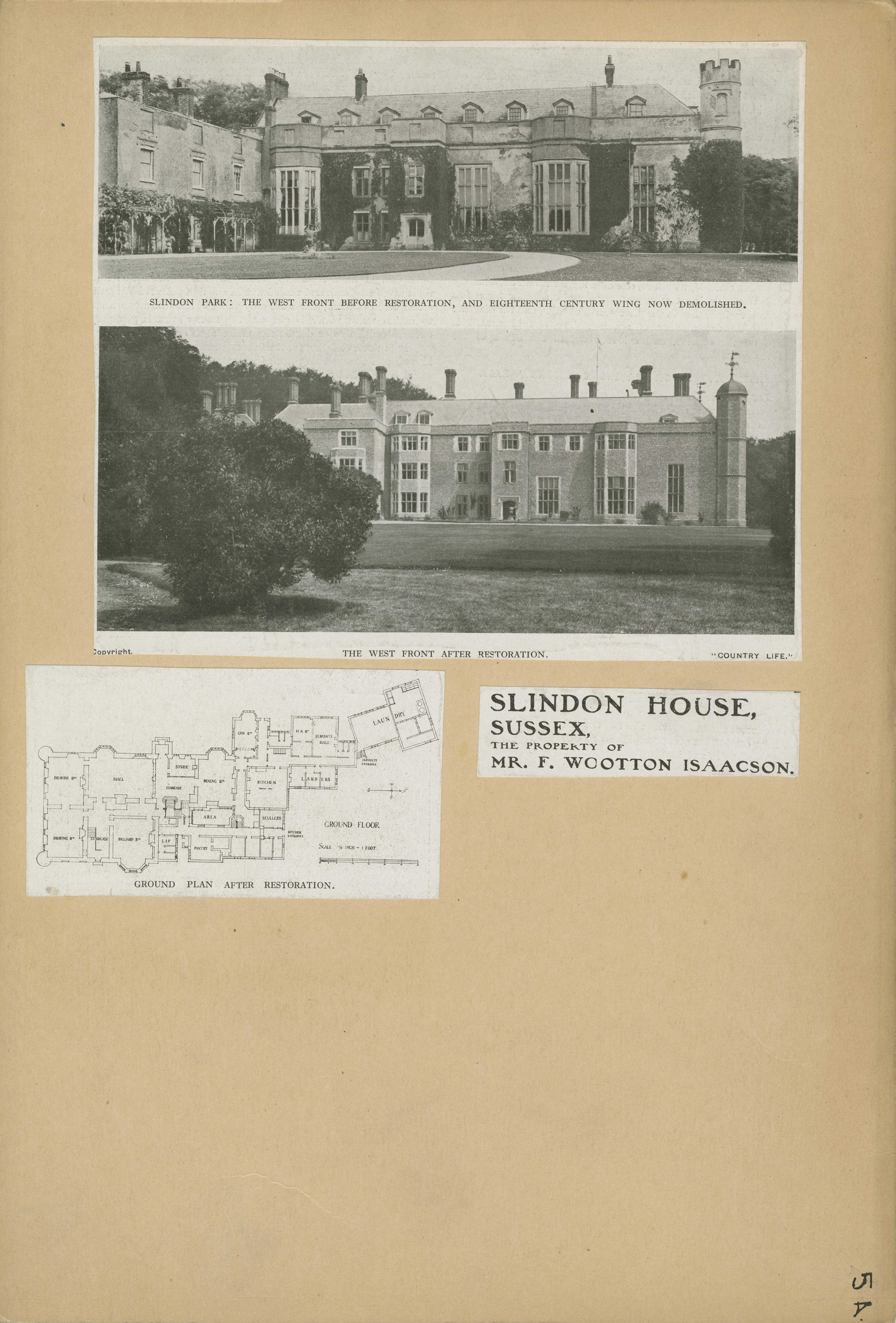 | Description | Location Box 5A Item 15 Slindon House, Sussex Mr. F. Wootton Isaacson, owner |