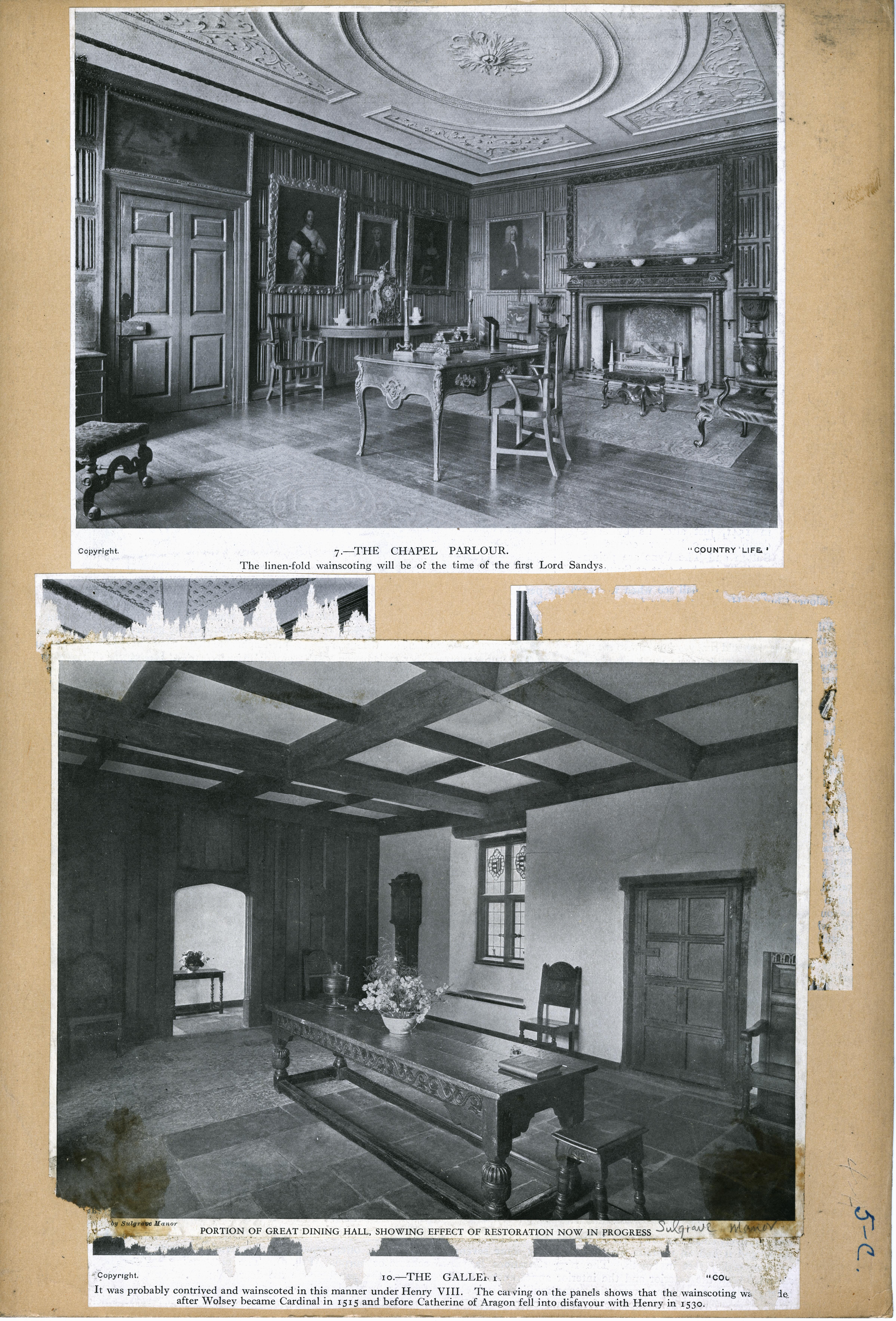 | Description | Location Box 5C Item 28 The chapel parlour Portion of great dining hall, showing effect of restoration now in progress sulgrave manor |