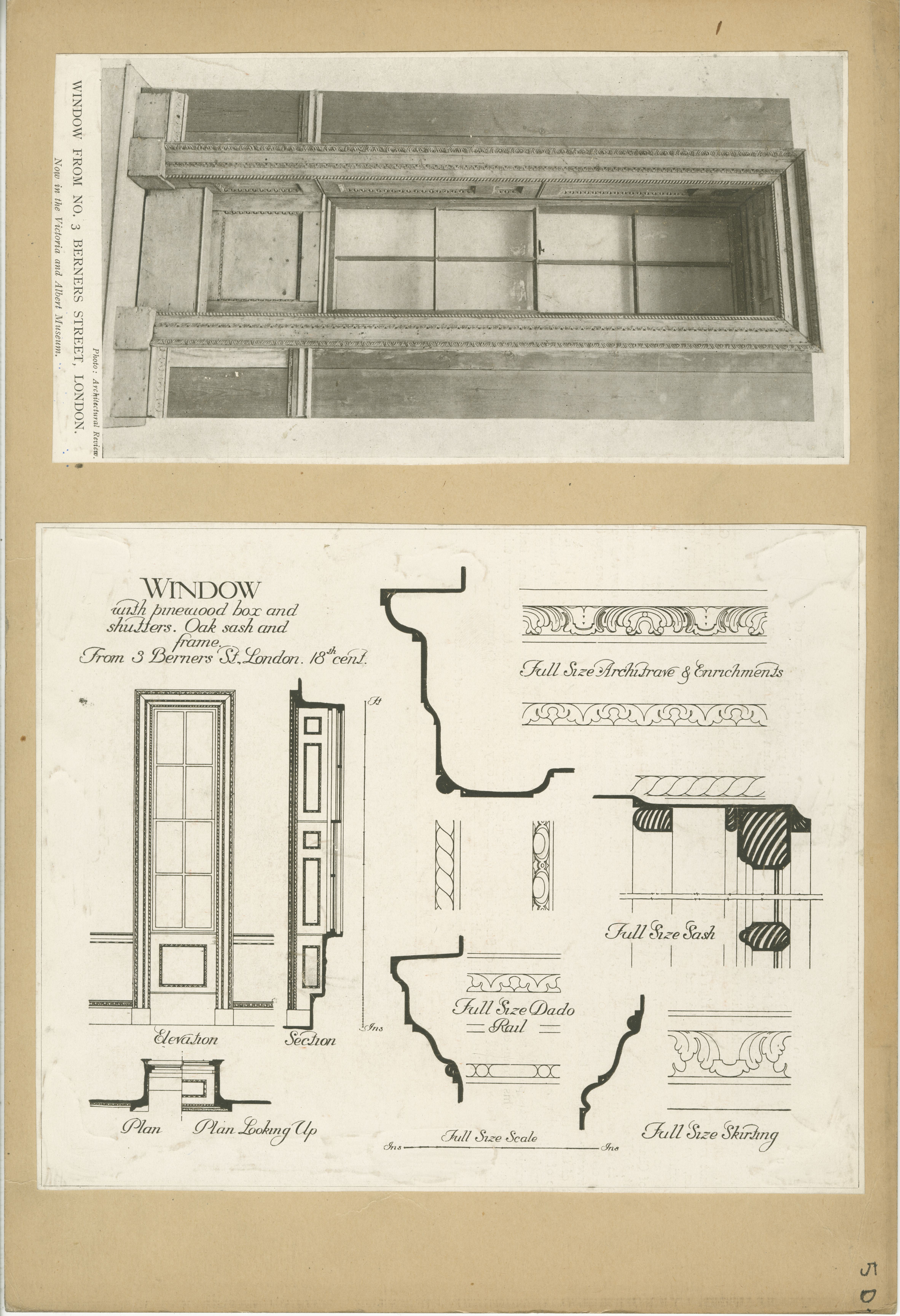 | Description | Location Box 5D File 11 Front Side Window from No. 3 Berners Street, London Elevation and Details |