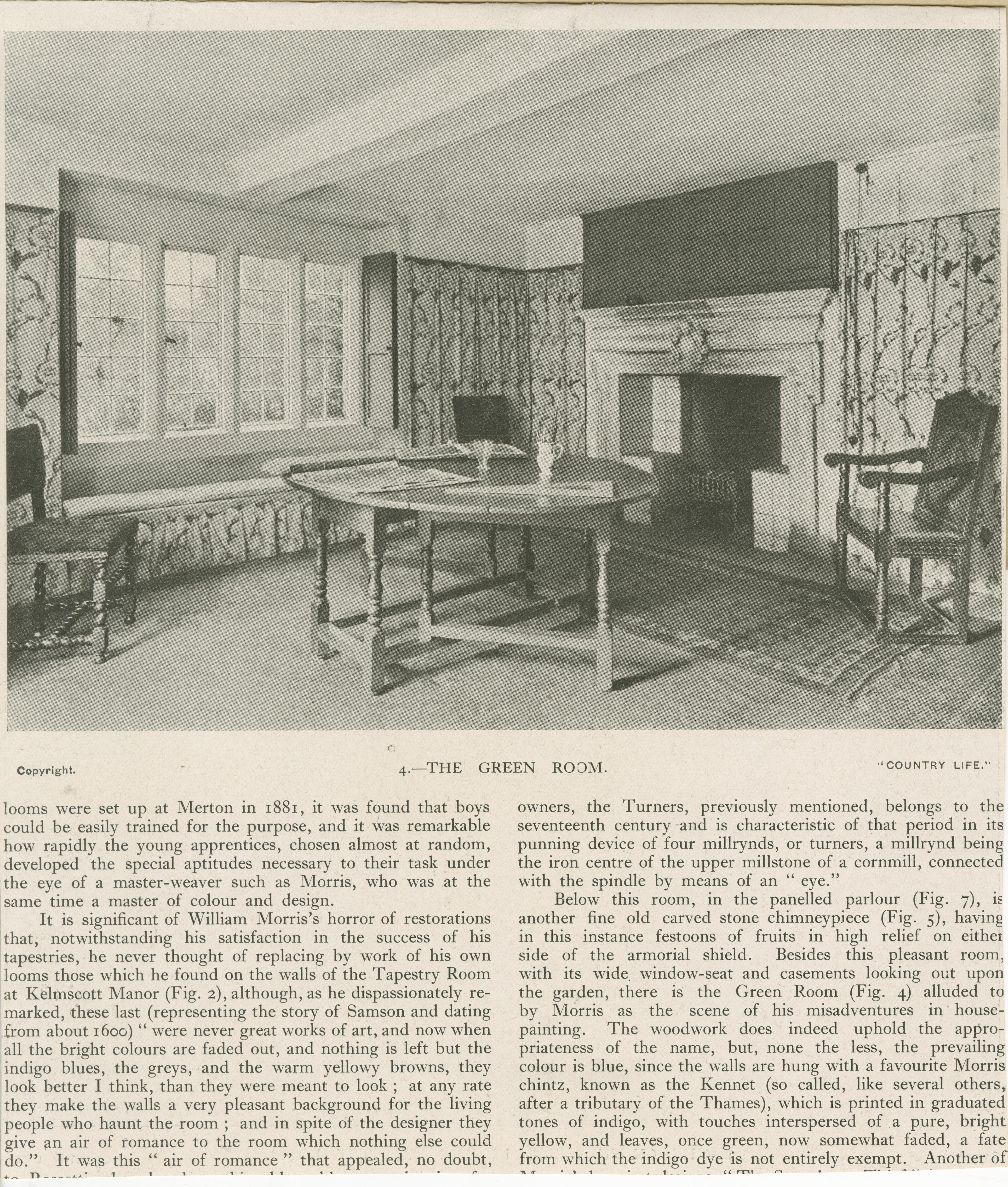 | Description | Location Box 5E File 3 Back Side Kelmscott Manor The Green Room Article |