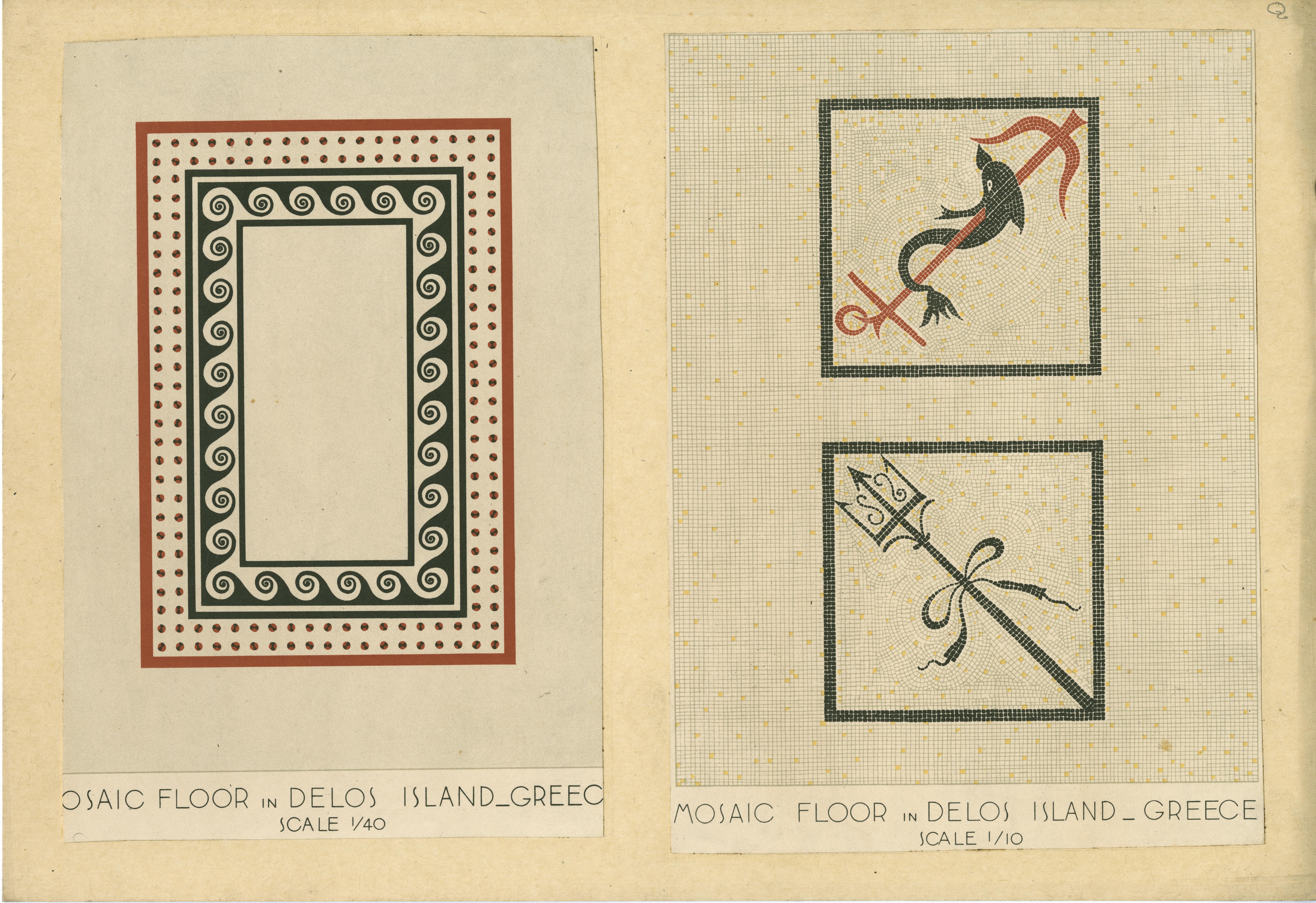 | Description | Location Box Q File 4 Mosaic Floor in Delos Island_Greece Corner Detail_Scale 1/ 40(left) 1/10 (right) |