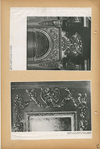 Location Box 3F Item 27 Page 19 Oost Kerk, Middleburg: Carved stone swag below window (top left) Detail of carved wood enrichment to overmantel in saloon (middle left) Carved marble frieze on mantelpiece in salon (bottom left)
