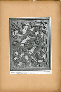 Location Box 3F File 26 Page 9 Details of Craftmanship. XXIV.- Carved oak panel of staircase (English, late seventeenth century) in the Victoria and Albert Museum, South Kensington.