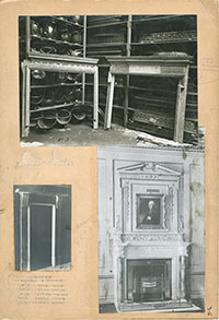 Location Box 3G Item 54 Mantelpieces (top) Marble chimneypiece, craft school, Stepney Green, London (bottom left) Mantelpiece from Carrington house, Whitehall (bottom right)