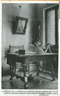 Location Box 11B File 1 Back Side A Corner in a library or writing room, arranged in typ- simple Spanish fashion with heavy walnut table and-