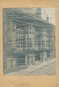 The images scanned and presented here are for scholarly use. Any commercial user should track and investigate the holder of any copyright for these images. The David Adler Cultural Center holds an archive of David Adler’s personal papers which were scanned by Laura Graham and Erik Liederbach of Liederbach and Graham, Architects in the summer of 2014 so that the content of those papers might be preserved electronically in case of any damage to the physical material. These papers were collected by David Adler, mounted on shirt cardboards and organized into a reference file for his own personal use in serving his clients. It is a wonderful glimpse into the material that interested the architect and which formed a part of his working library. Anyone with a working knowledge of the operation of a traditional architectural practice will understand the value and use of such an archive. What is remarkable about this collection is the breadth of the architect’s interests.