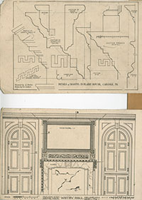 Location Box 1E Item 36 Back Side Details of Mantel in Blaine House, Carlisle, PA Measured by A. L. Kocher, Drawn by E. C. Seibert Drawing Room Mantel Piece, Whitby Hall, Philadelphia, PA 1754