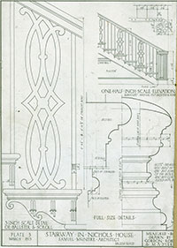 Location Box 1G Item 9 Back Side Plate Three Main Stairway in the Nichols House, Salem, Massachusetts 1800 Samuel McIntire, Architect Measured and Drawn by Gordon Robb and M. A. Dyer