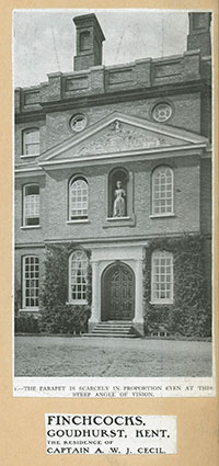 Location Box 3A Item 11 Page 2 The Parapet Finchcocks, Goudhurst, Kentucky Captain A. W. J. Cecil Residence Article in "Country Life"