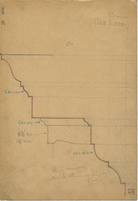 Location Box 3F File 21 (Back side) Ceiling in an old house, Clare Market, London, E. C. About 1670. (bottom right) Ceiling (top left)