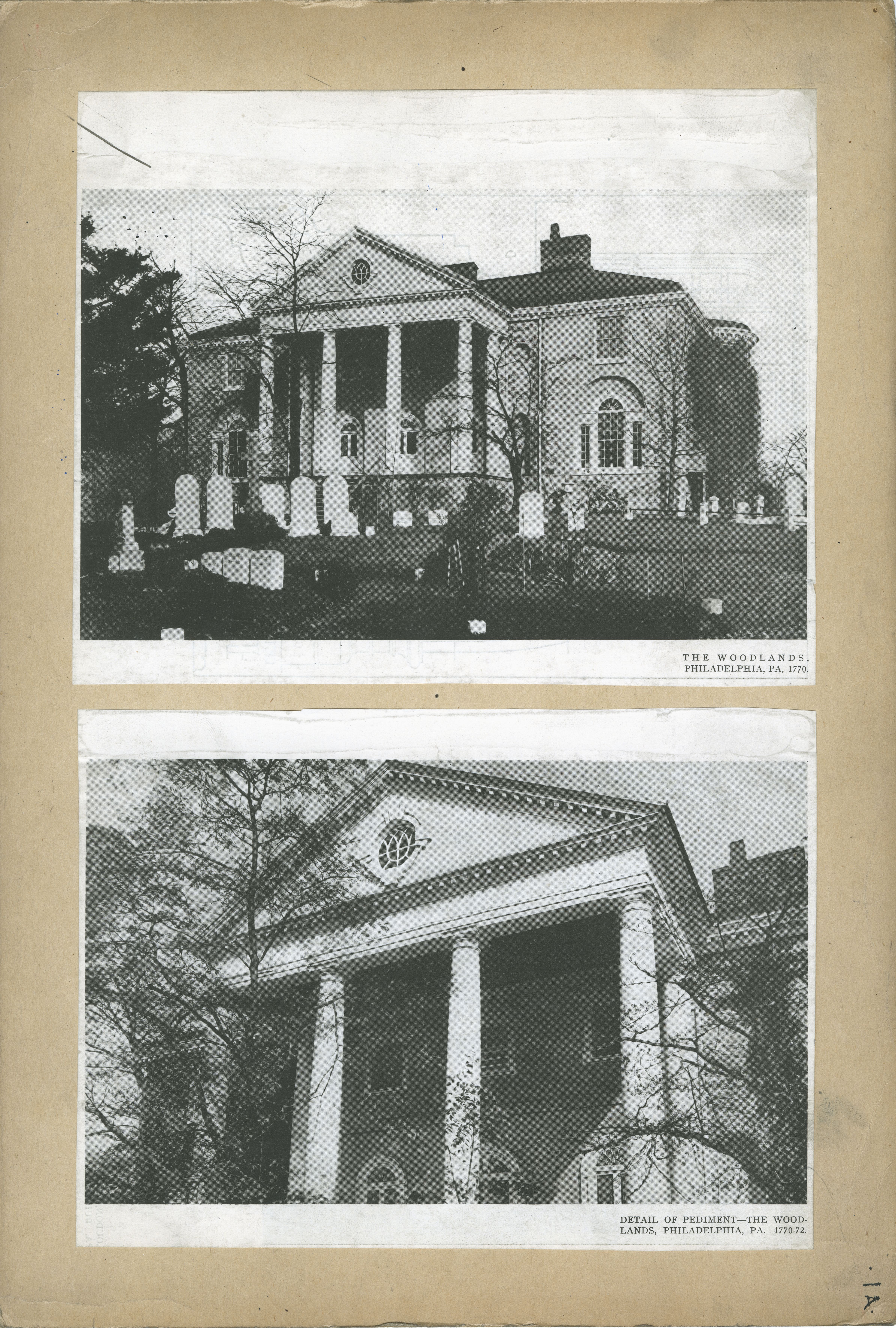 | Description | Location Box 1A Item 92 The Woodlands, Philadelphia, PA 1770 Front Exterior and Detail of Pediment |